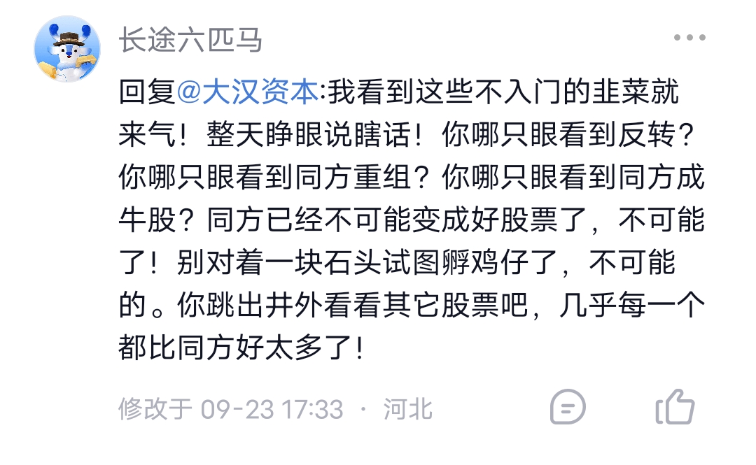 温馨提示: 1.根据《证券法》规定,禁止编造、传播虚假信息或者误导性信息,扰乱证券市场;2.用户在本社区发表的所有资料、言论等仅代表个人观点,与本网站立场无关,不对您构成任何投资建议。用户应基于自己的独立判断,自行决定证券投资并承担相应风险。《东方财富社区管理规定》