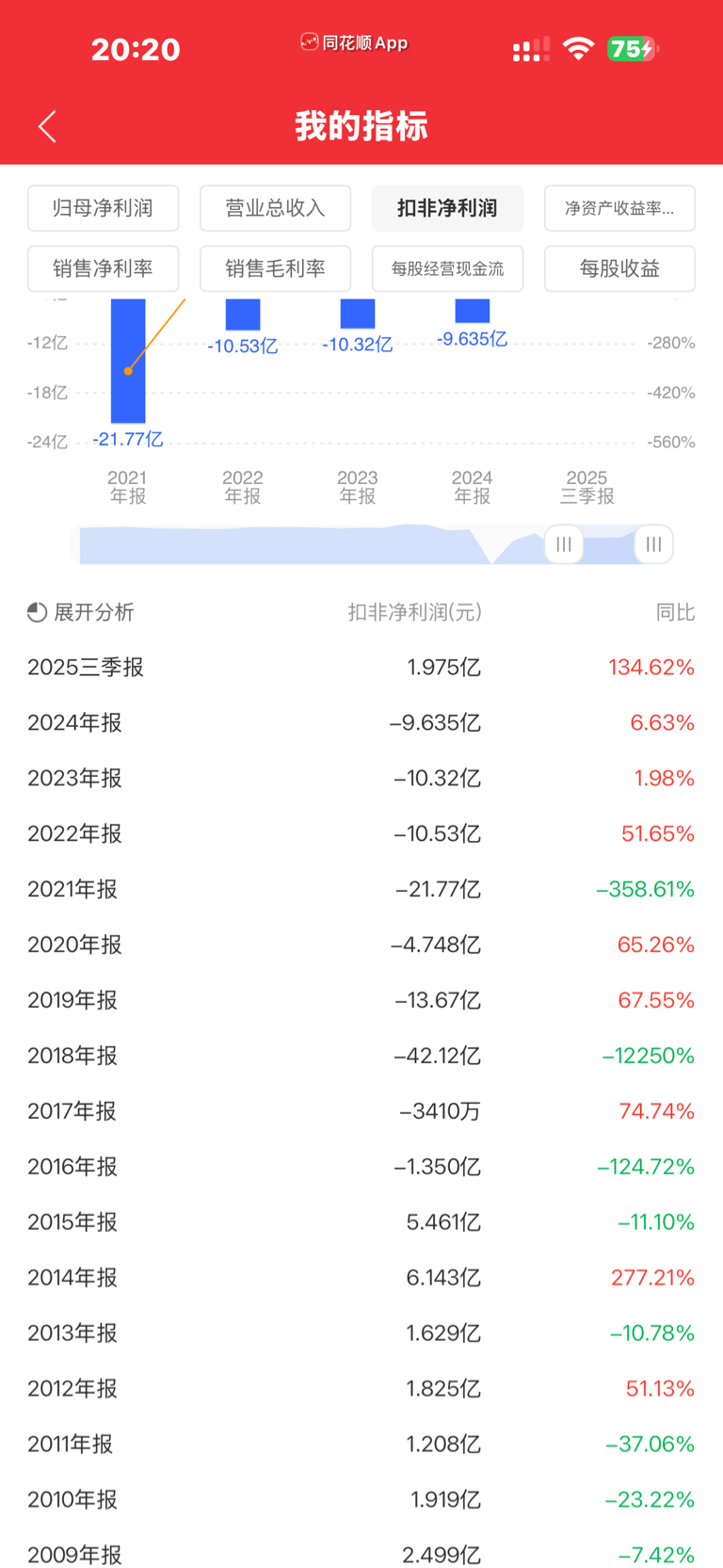 $同方股份(SH600100)$ 9年 足足等了9年扣非净利润