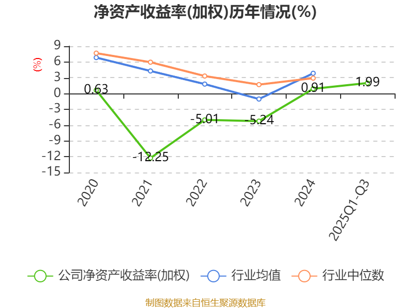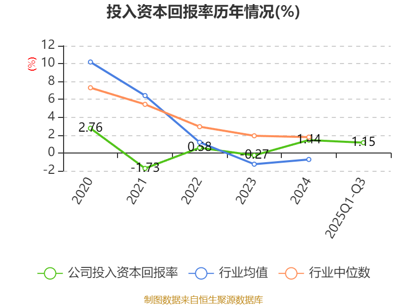 盈利能力方面, 2025年前三季度公司加权平均净资产收益率为1.99%,同比上升0.03个百分点。公司2025年前三季度投入资本回报率为1.15%,较上年同期上升0.97个百分点。