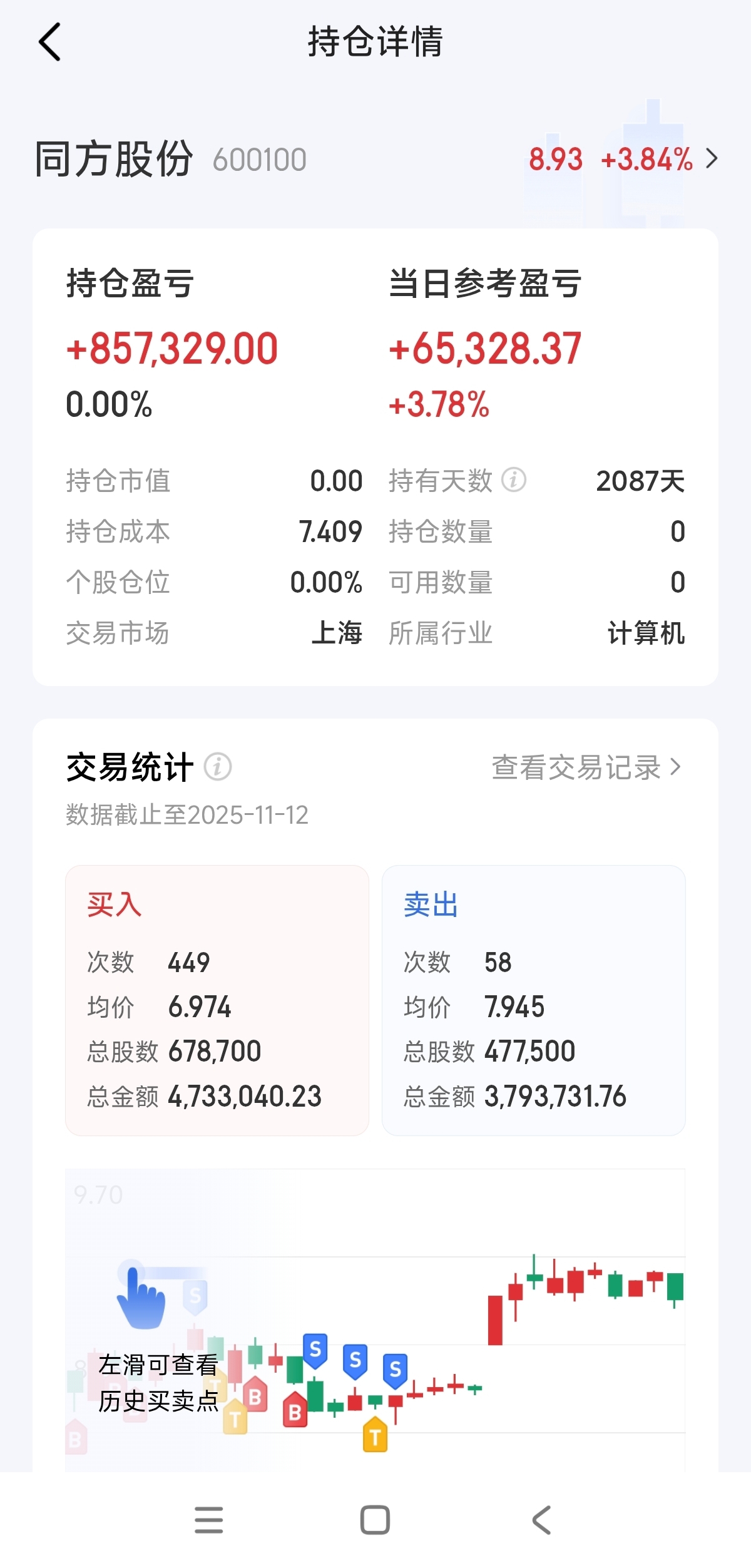 $同方股份(SH600100)$ 急用钱清仓了,没赚到钱