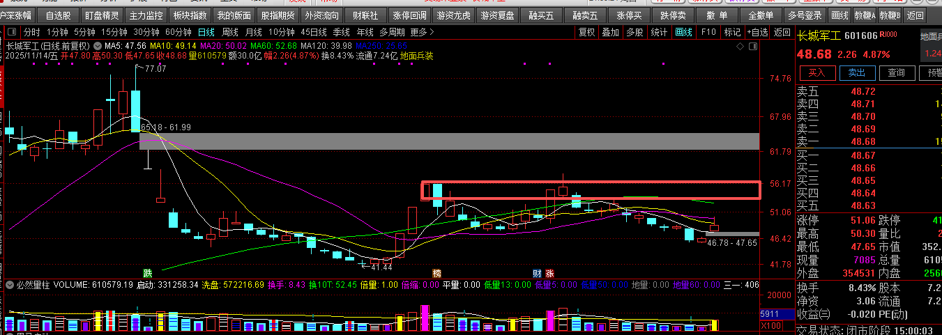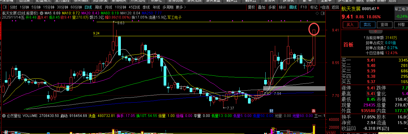 今年以来军G板块屡创新高,板块内大多数龙T股都已经创出了历史新高,高位的股涨幅过大,性价比没有那么的高了,而航天发展作为曾经的老牌军工妖谷,今年并未跟随军工板块一起向上高走,但其基本面的转好和政C面的消息鼓动,再加上技术面上的底部确认特征明显,当下位置的航天发展性价比极高,短线已经开始受到游紫J沟的关注,说明谷价即将启动,向上的空间非常大。低开来两三个点站稳可入,或弱转强站稳周五收盘价后入手更优。