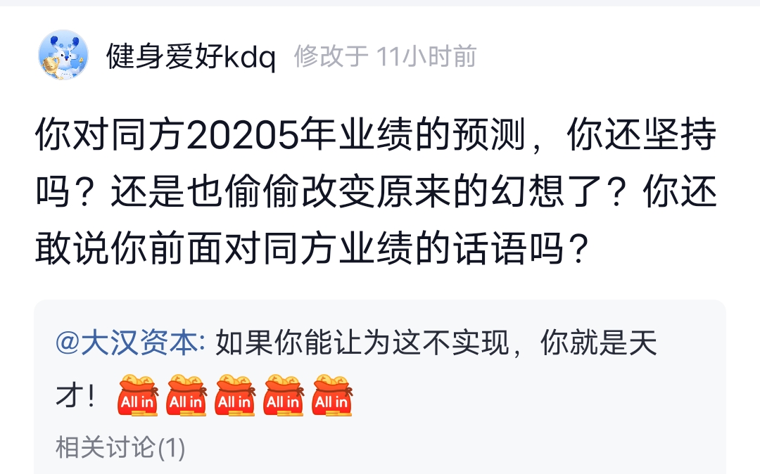 温馨提示: 1.根据《证券法》规定,禁止编造、传播虚假信息或者误导性信息,扰乱证券市场;2.用户在本社区发表的所有资料、言论等仅代表个人观点,与本网站立场无关,不对您构成任何投资建议。用户应基于自己的独立判断,自行决定证券投资并承担相应风险。《东方财富社区管理规定》