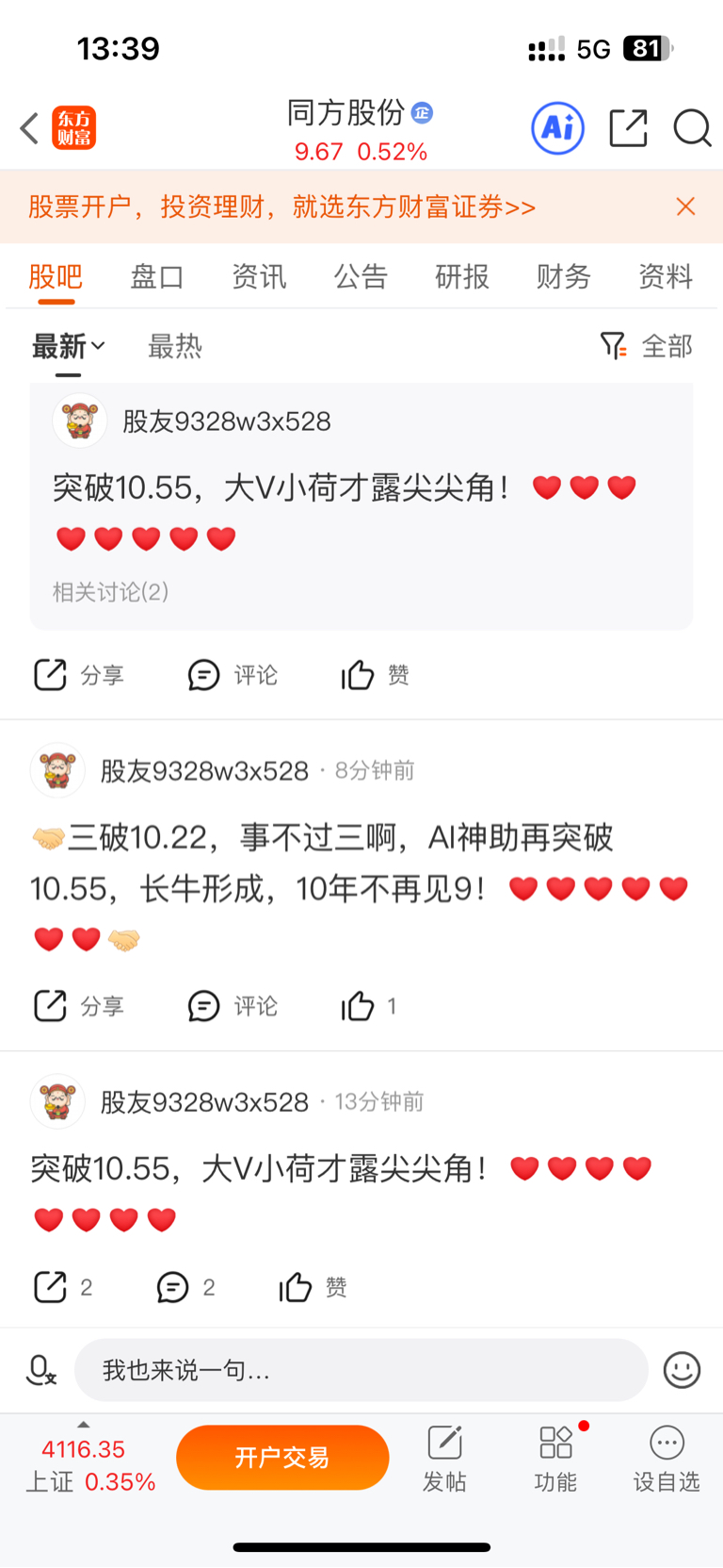 温馨提示: 1.根据《证券法》规定,禁止编造、传播虚假信息或者误导性信息,扰乱证券市场;2.用户在本社区发表的所有资料、言论等仅代表个人观点,与本网站立场无关,不对您构成任何投资建议。用户应基于自己的独立判断,自行决定证券投资并承担相应风险。《东方财富社区管理规定》