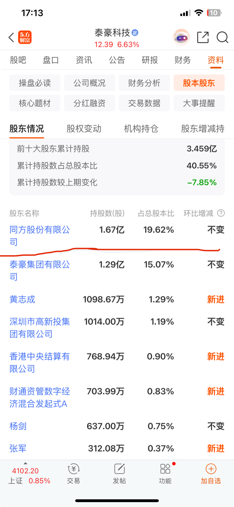 $同方股份(SH600100)$ 30%都拉不动这个大股东??反而跌了10个点?