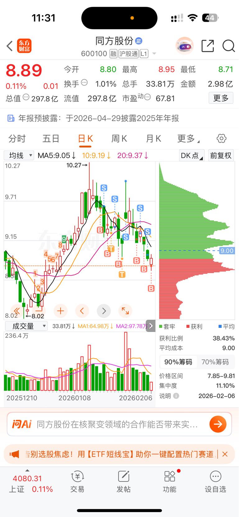 $同方股份(SH600100)$ 一直念念不忘。#复盘记录#