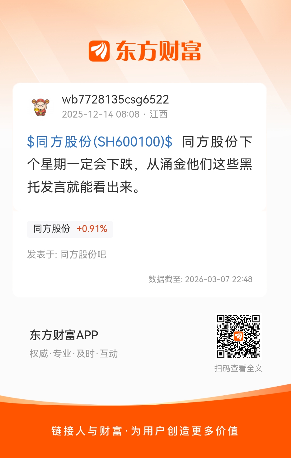 温馨提示: 1.根据《证券法》规定,禁止编造、传播虚假信息或者误导性信息,扰乱证券市场;2.用户在本社区发表的所有资料、言论等仅代表个人观点,与本网站立场无关,不对您构成任何投资建议。用户应基于自己的独立判断,自行决定证券投资并承担相应风险。《东方财富社区管理规定》