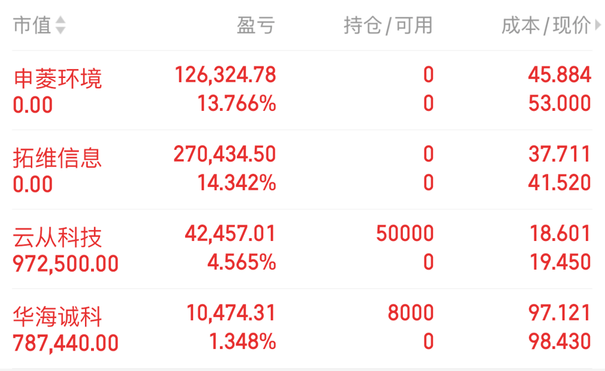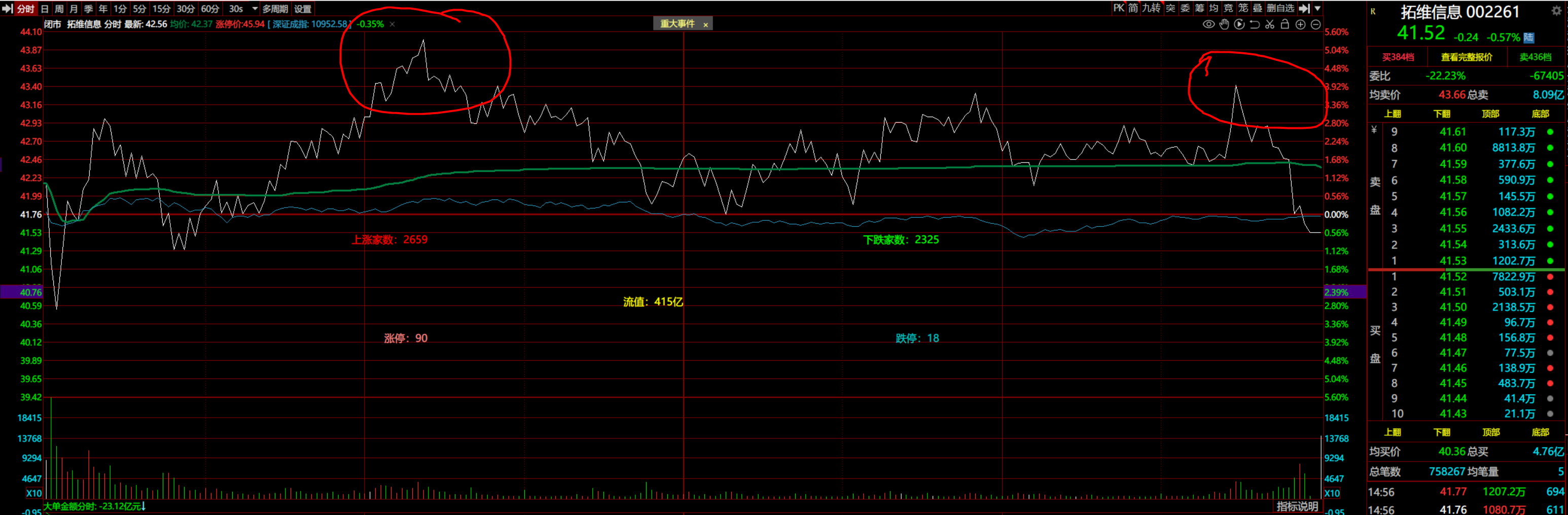 拓维信息:因为同批次高标超预期的强烈负反馈,同时拓维信息今天也受异动监管影响,有4%的涨幅压制,所以在早盘冲高4%左右一体机板块整体发酵的时候,拓维信息就提前清仓止盈了,因为预计后期拓维信息的走势会更偏震荡而非主升。