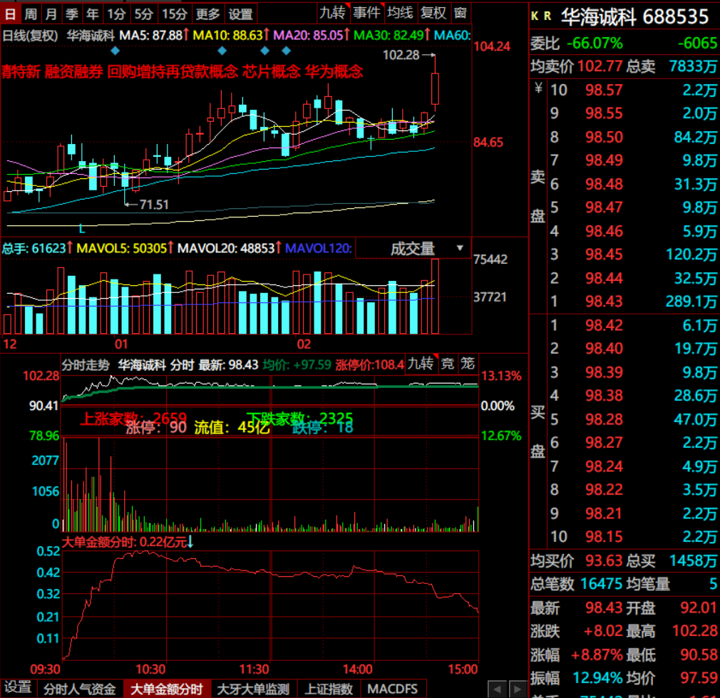 华海诚科:走势符合盘前预期,它所在板块开盘后有明显的联动效应,于是找了个分时调整的小低点做了低吸,但因为今天盘面整体不太理想,所以仓位这里控制了一下。