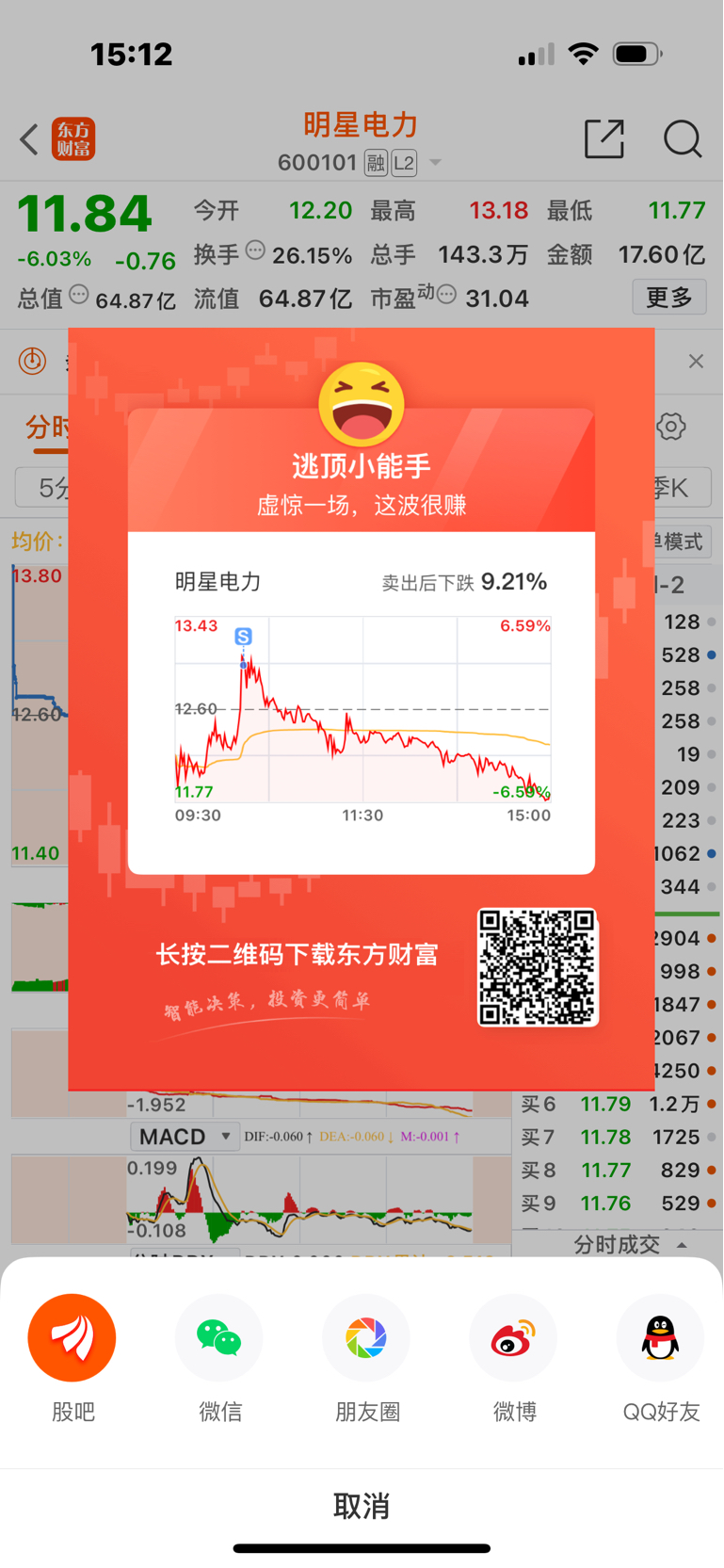$明星电力(SH600101)$ 大盘缩量不到1.2万亿,被套的人一定不要割,不要到处乱跑,现在去哪里都一样。4月到6月都是电力行情,洗盘就三天,三天后会慢慢反弹。