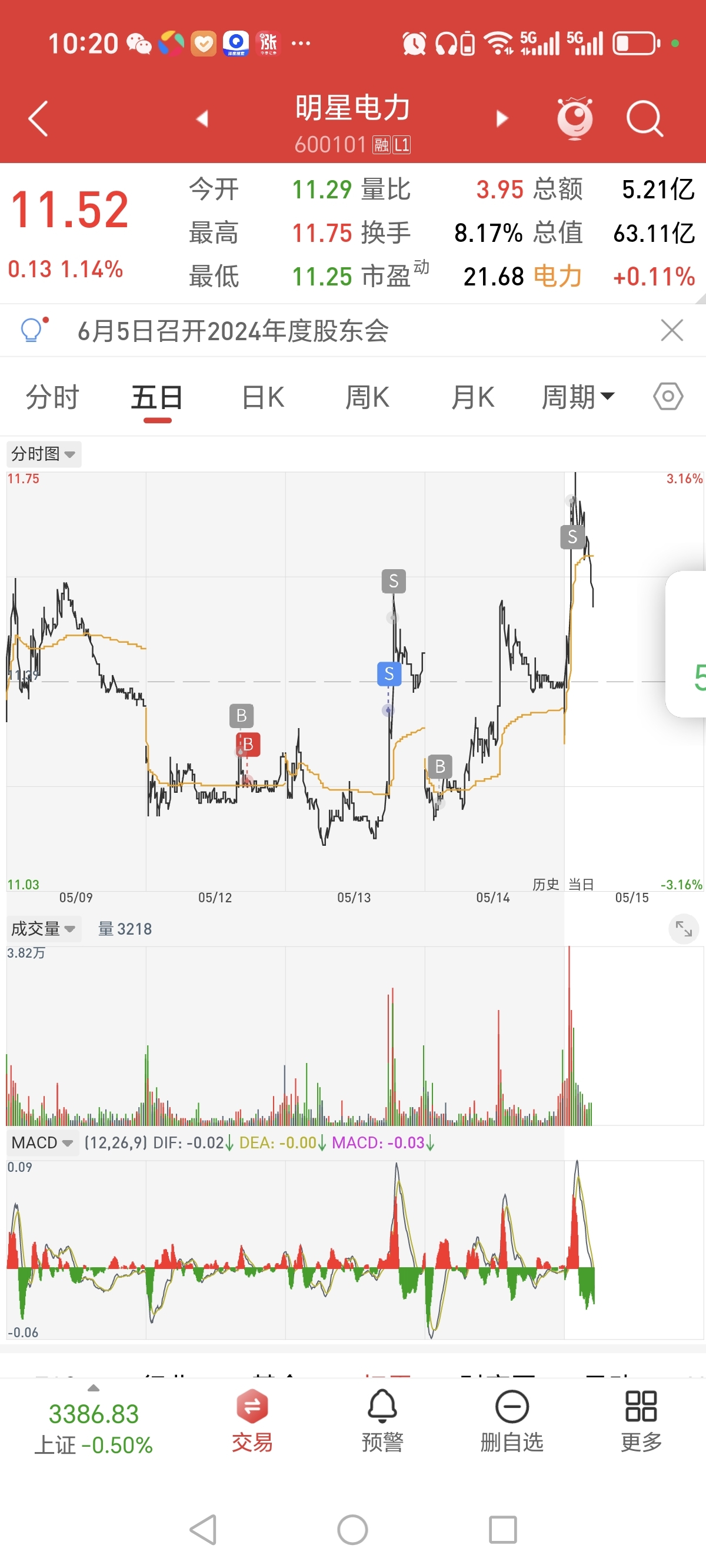 $明星电力(SH600101)$