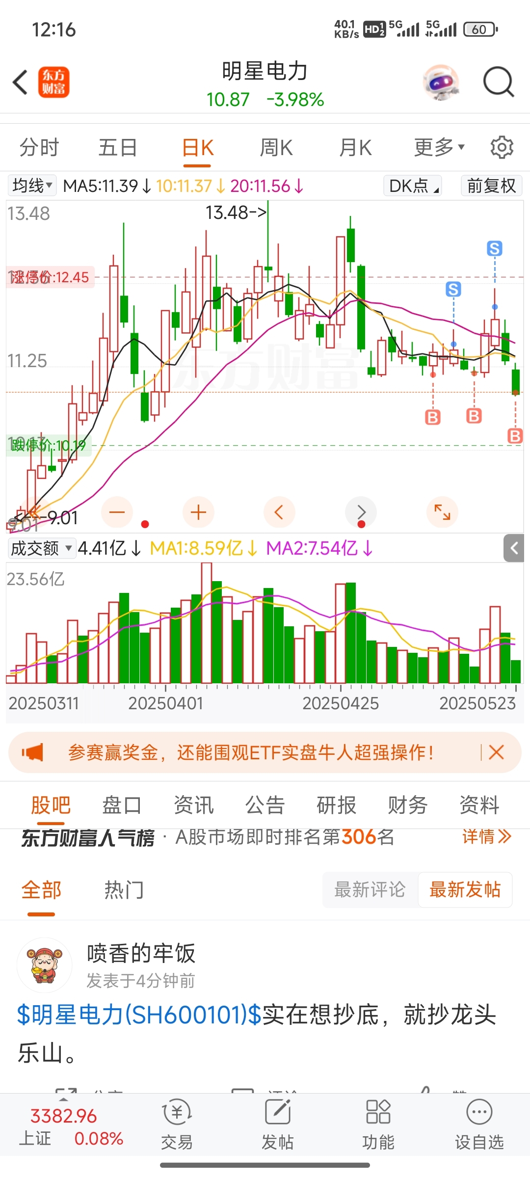 $明星电力(SH600101)$ 我又回来了