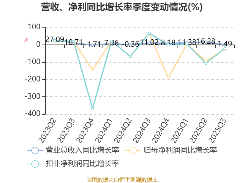 负债重大变化方面,截至2025年三季度末,公司应付票据及应付账款较上年末减少21.97%,占公司总资产比重下降2.65个百分点;合同负债较上年末增加28.89%,占公司总资产比重上升1.16个百分点;其他应付款(含利息和股利)较上年末增加24.1%,占公司总资产比重上升0.46个百分点;应交税费较上年末减少12.84%,占公司总资产比重下降0.09个百分点。