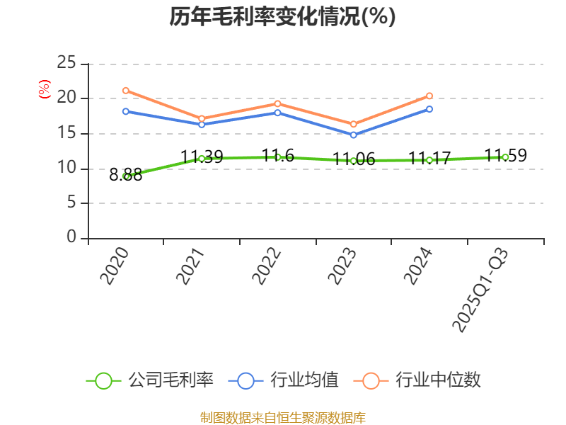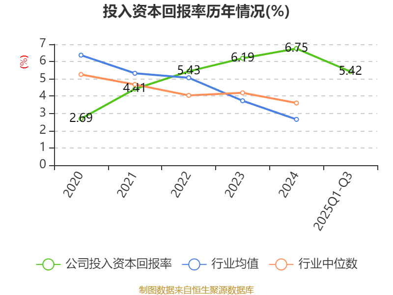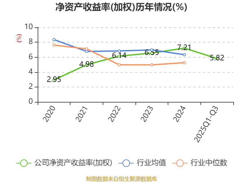 盈利能力方面, 2025年前三季度公司加权平均净资产收益率为5.82%,同比下降1.83个百分点。公司2025年前三季度投入资本回报率为5.42%,较上年同期下降1.82个百分点。