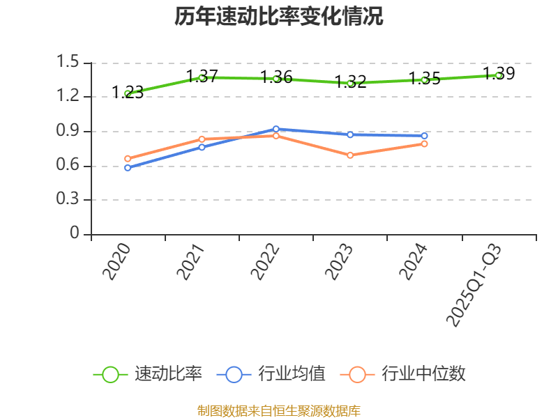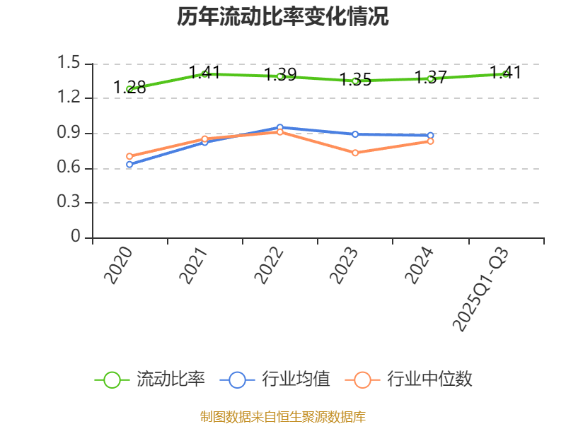 2025年前三季度,公司流动比率为1.41,速动比率为1.39。
