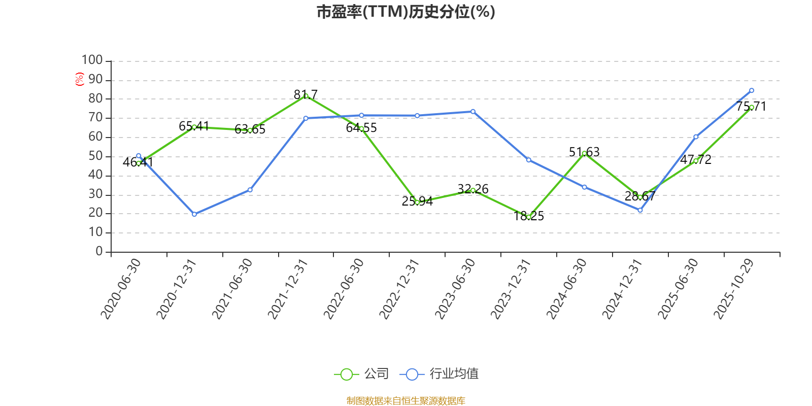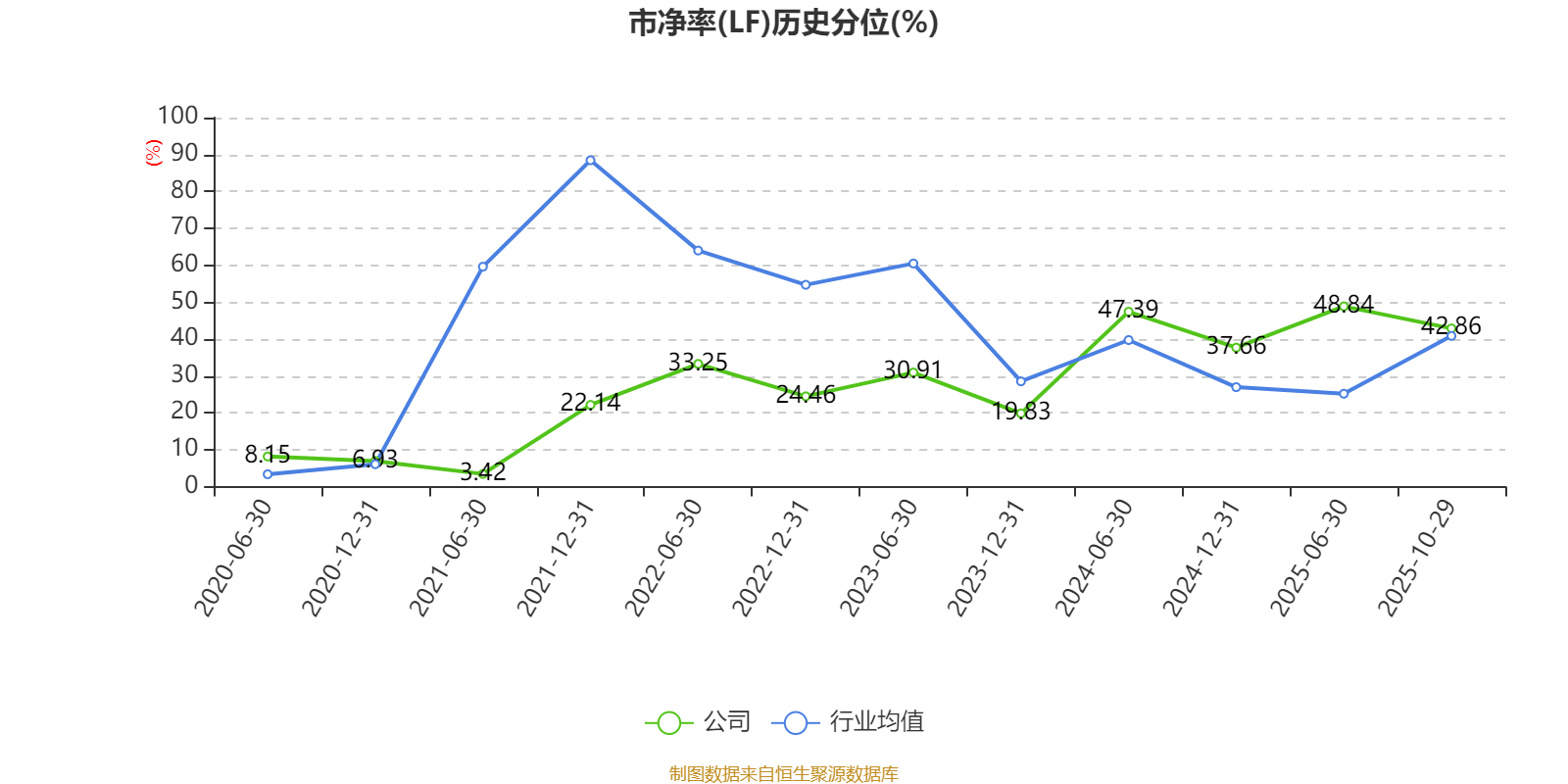 市盈率、市净率为负时,不显示当期分位数,会导致折线图中断。