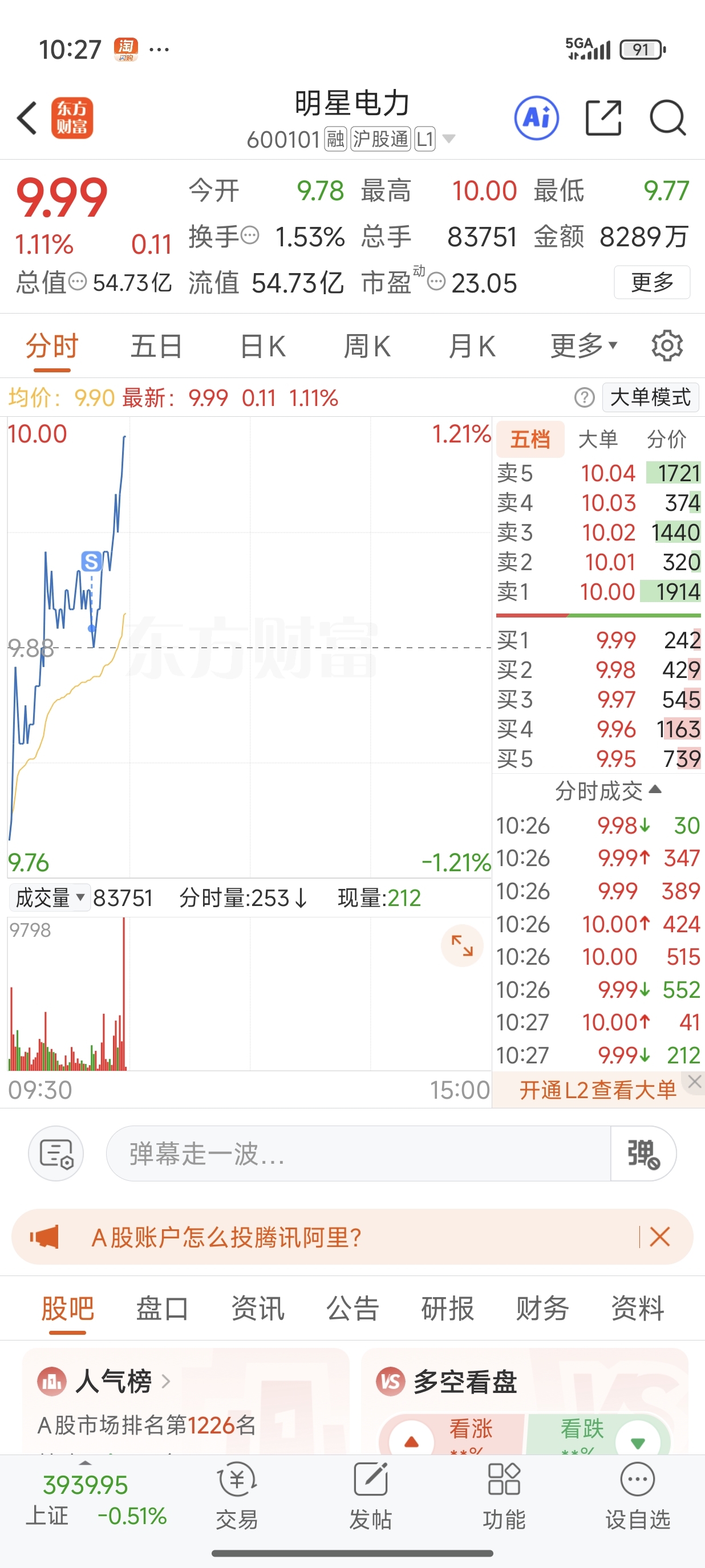 $明星电力(SH600101)$ 不是吧,我刚下车