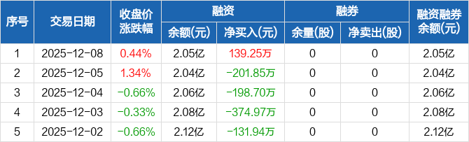 明星电力:融资净买入139.25万元,融资余额2.05亿元(12-08)