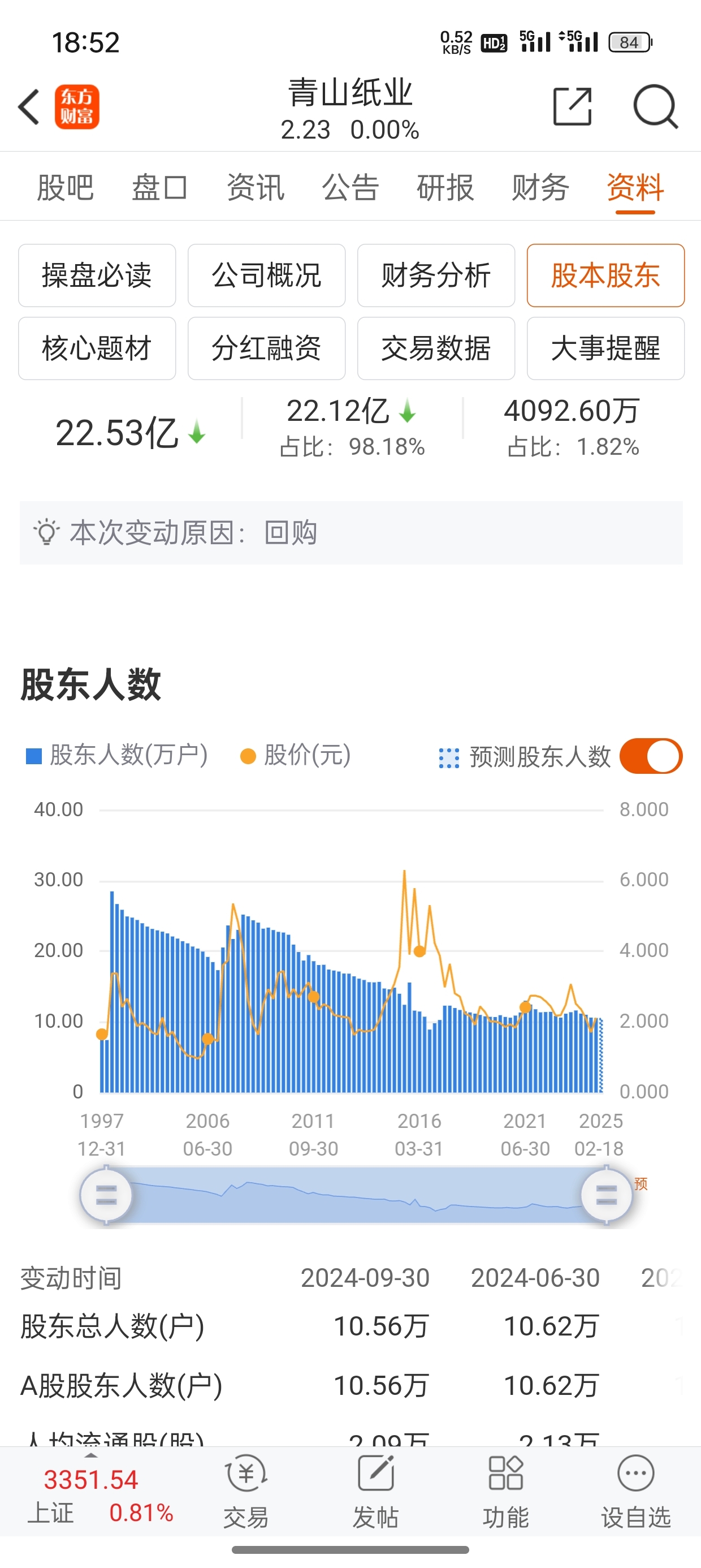 $青山纸业(SH600103)$ 青山上市以来,一直是散户集中营。