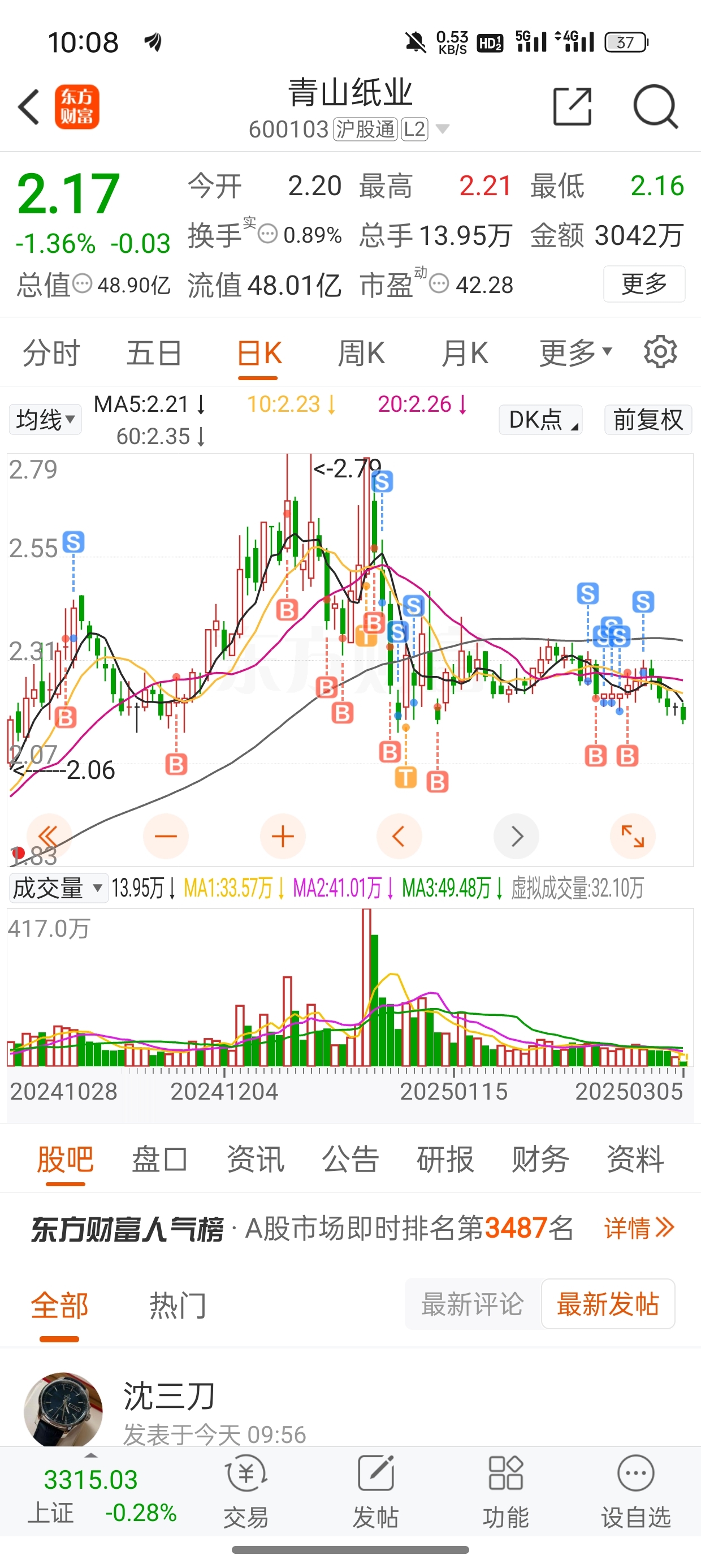 $青山纸业(SH600103)$ 一个个看多的现在的老实了,什么时候卖都是最高点,不破2元不建仓。