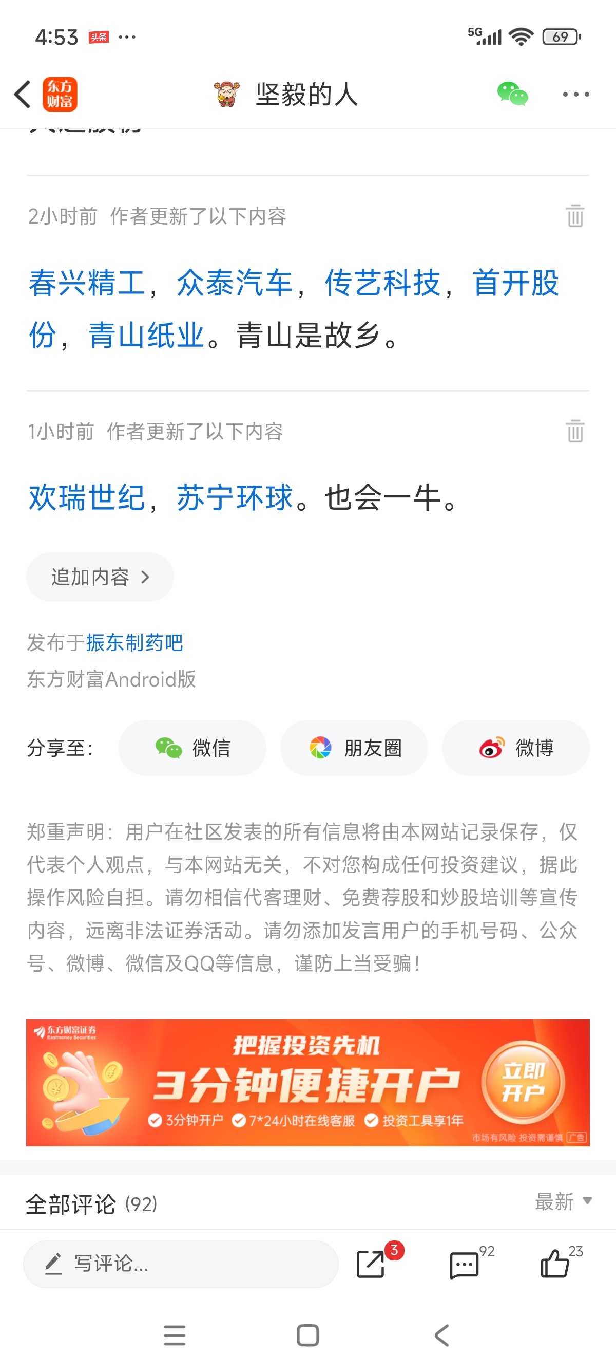 温馨提示: 1.根据《证券法》规定,禁止编造、传播虚假信息或者误导性信息,扰乱证券市场;2.用户在本社区发表的所有资料、言论等仅代表个人观点,与本网站立场无关,不对您构成任何投资建议。用户应基于自己的独立判断,自行决定证券投资并承担相应风险。《东方财富社区管理规定》