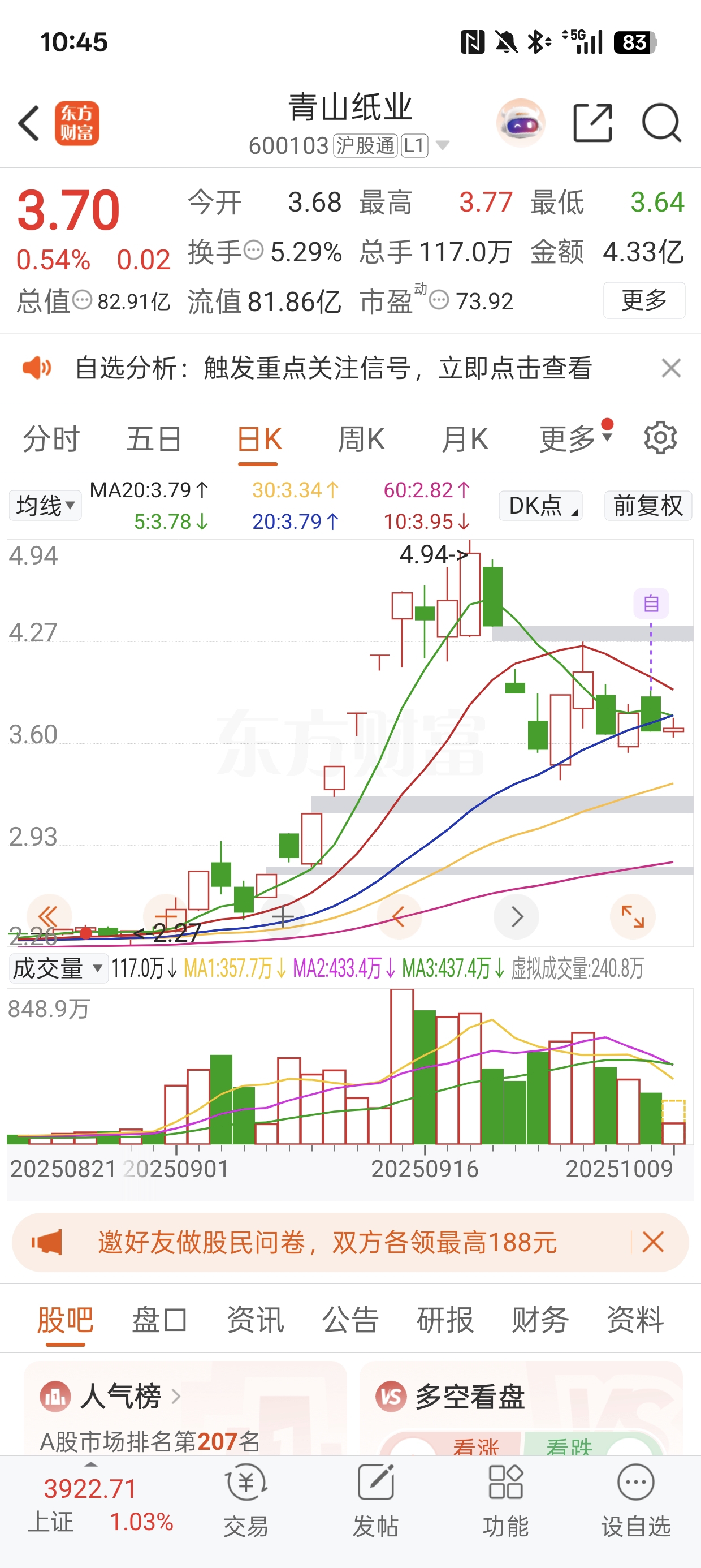 $青山纸业(SH600103)$ 业绩题材趋势还可以,先留个眼