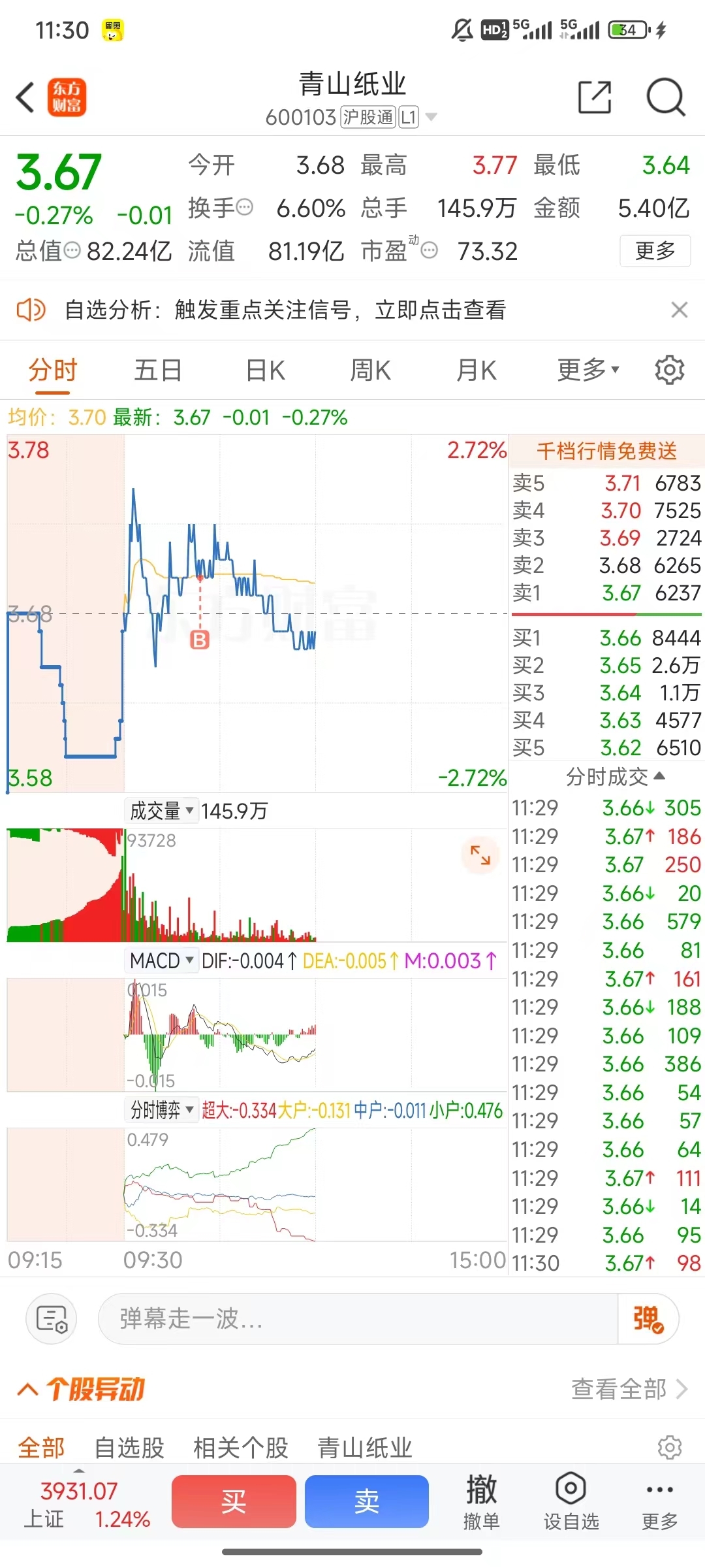 $青山纸业(SH600103)$ 又这样,呵呵了