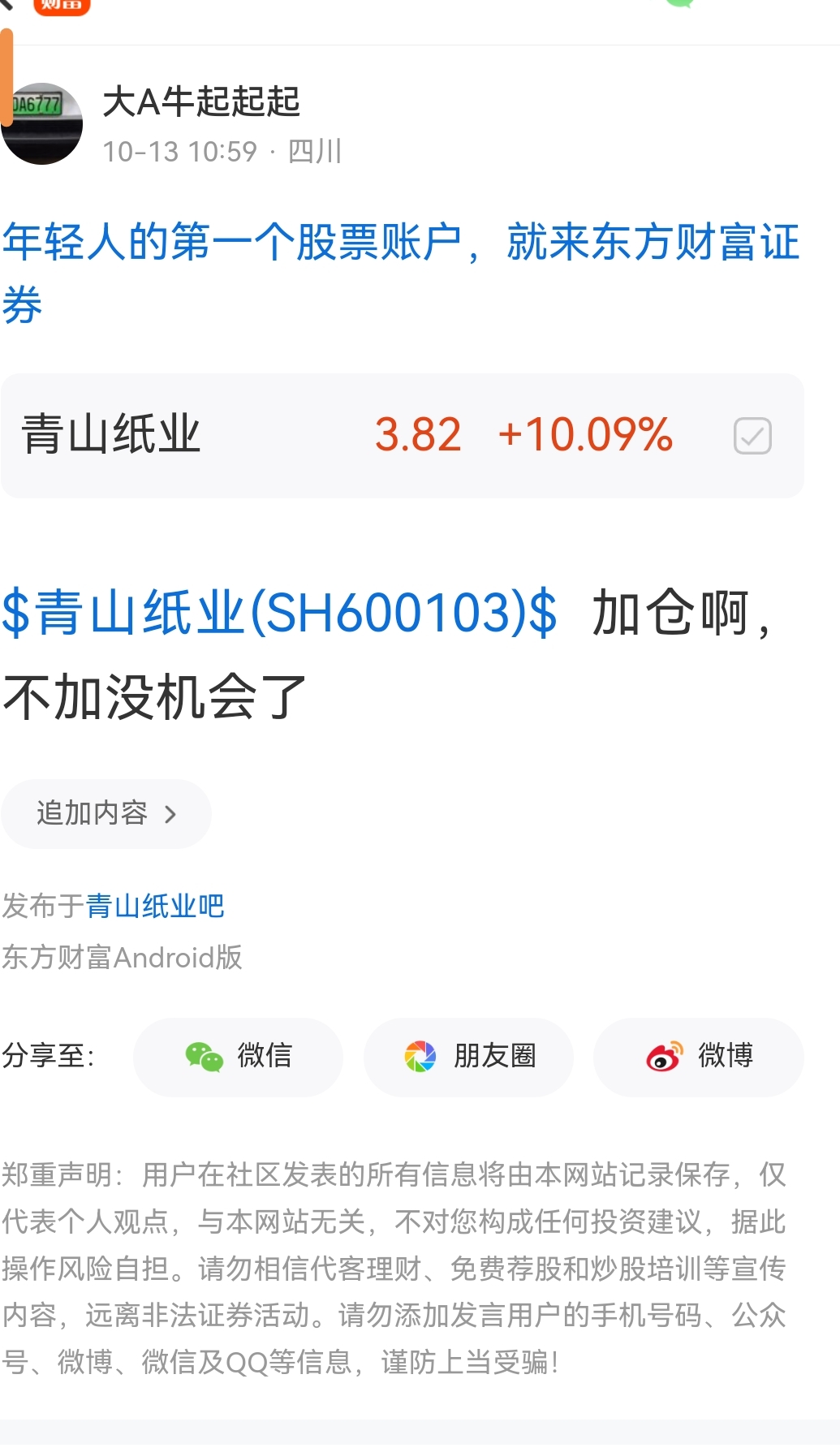$青山纸业(SH600103)$ 哎和我预计的一样