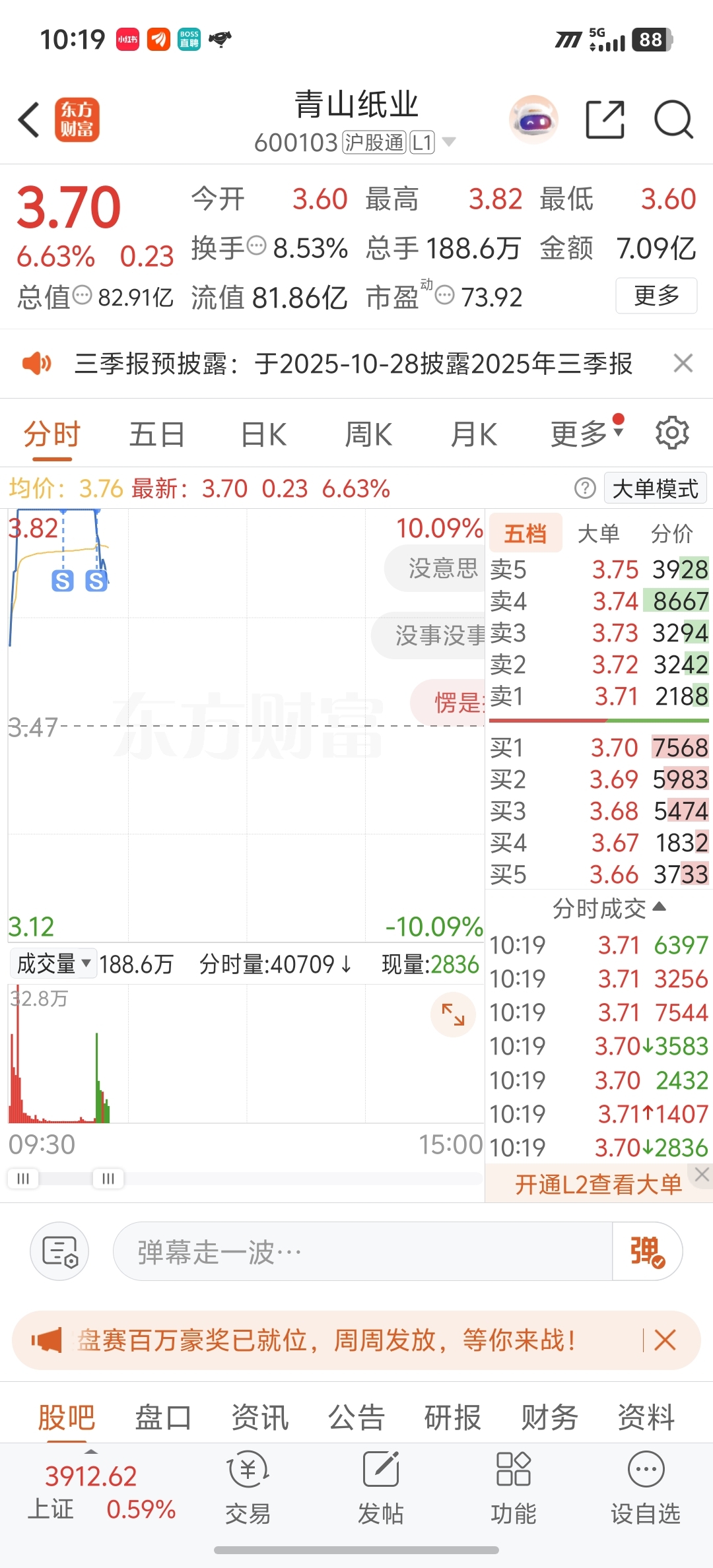 $青山纸业(SH600103)$ 还好眼疾手快