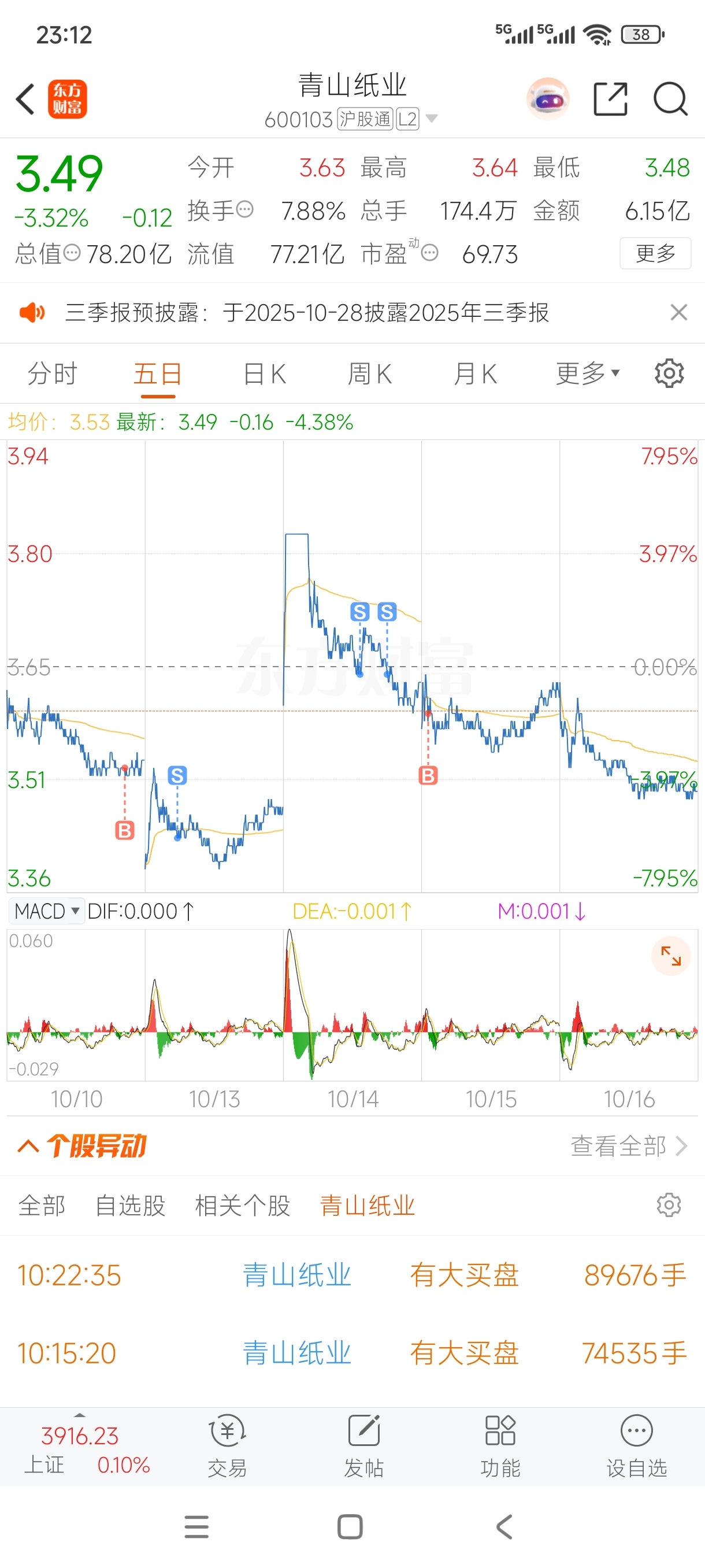 $青山纸业(SH600103)$ 还是接回来早了,凡事涨停炸板不封板的一律清,