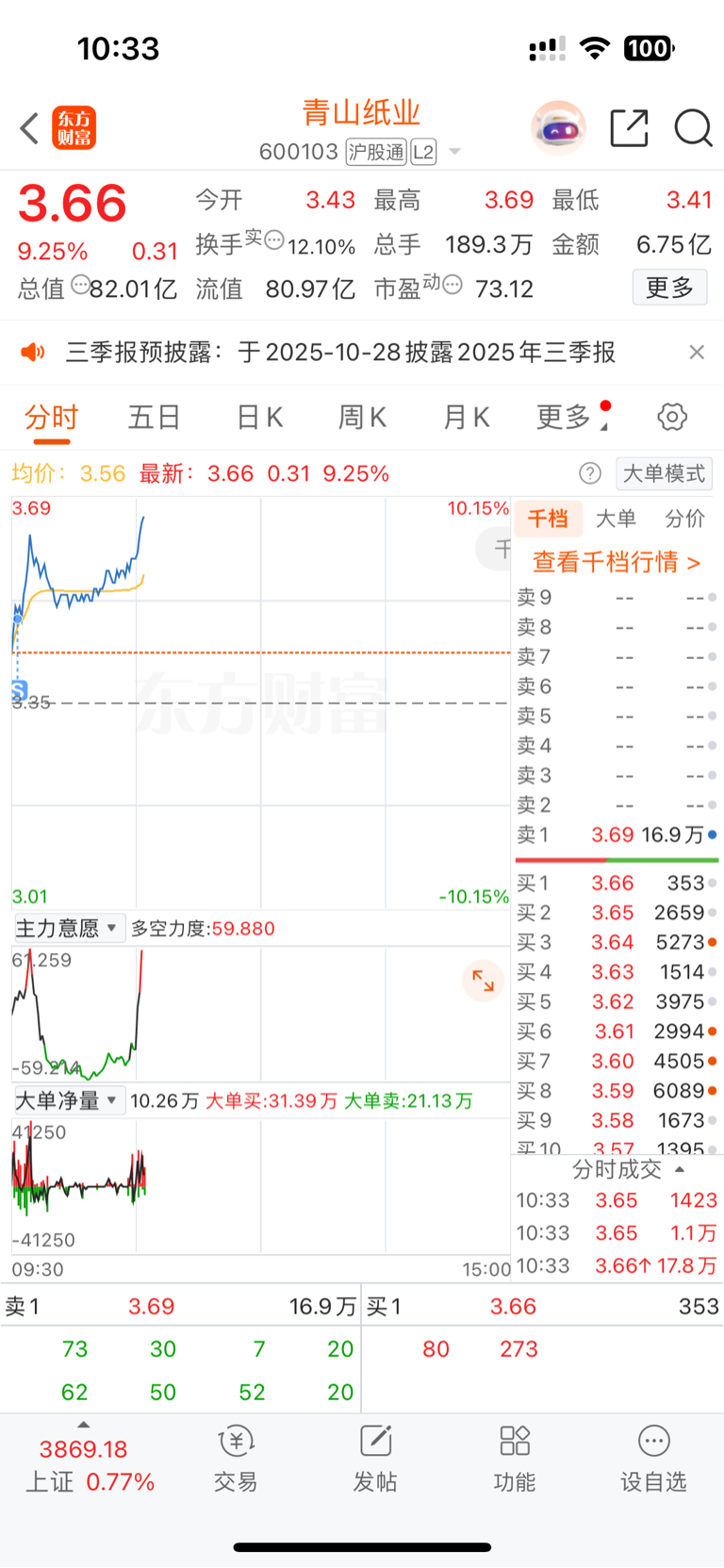 $青山纸业(SH600103)$ 还好就卖了三分之一