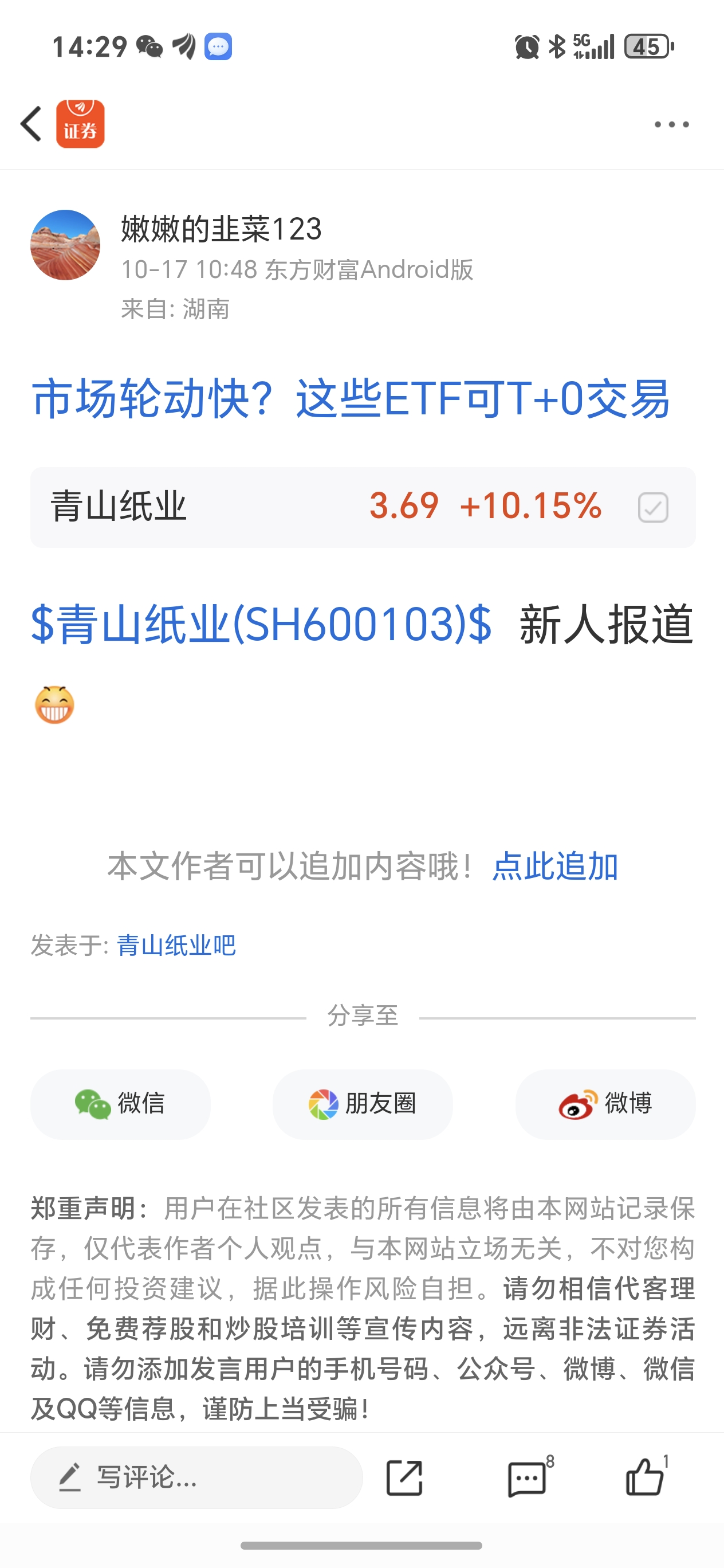 温馨提示: 1.根据《证券法》规定,禁止编造、传播虚假信息或者误导性信息,扰乱证券市场;2.用户在本社区发表的所有资料、言论等仅代表个人观点,与本网站立场无关,不对您构成任何投资建议。用户应基于自己的独立判断,自行决定证券投资并承担相应风险。《东方财富社区管理规定》