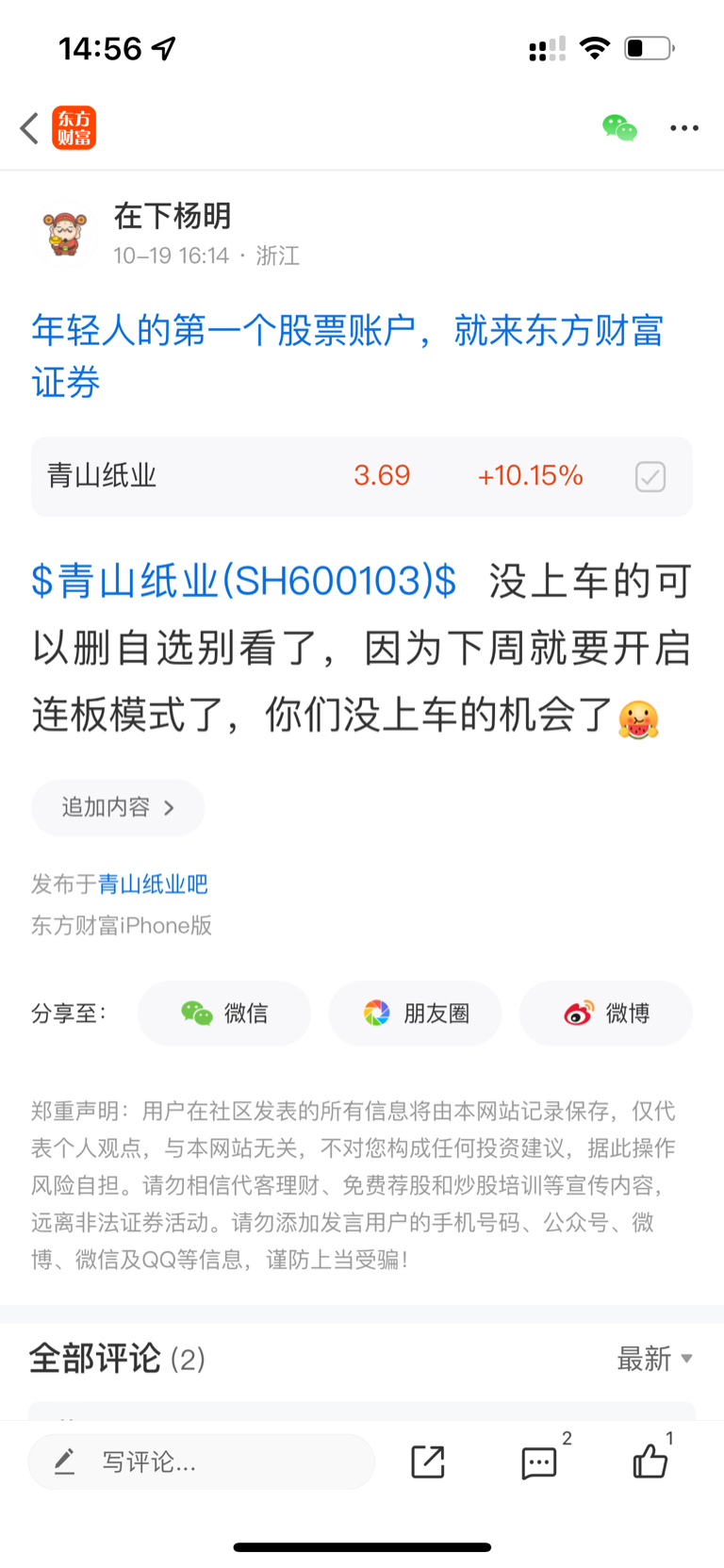 温馨提示: 1.根据《证券法》规定,禁止编造、传播虚假信息或者误导性信息,扰乱证券市场;2.用户在本社区发表的所有资料、言论等仅代表个人观点,与本网站立场无关,不对您构成任何投资建议。用户应基于自己的独立判断,自行决定证券投资并承担相应风险。《东方财富社区管理规定》