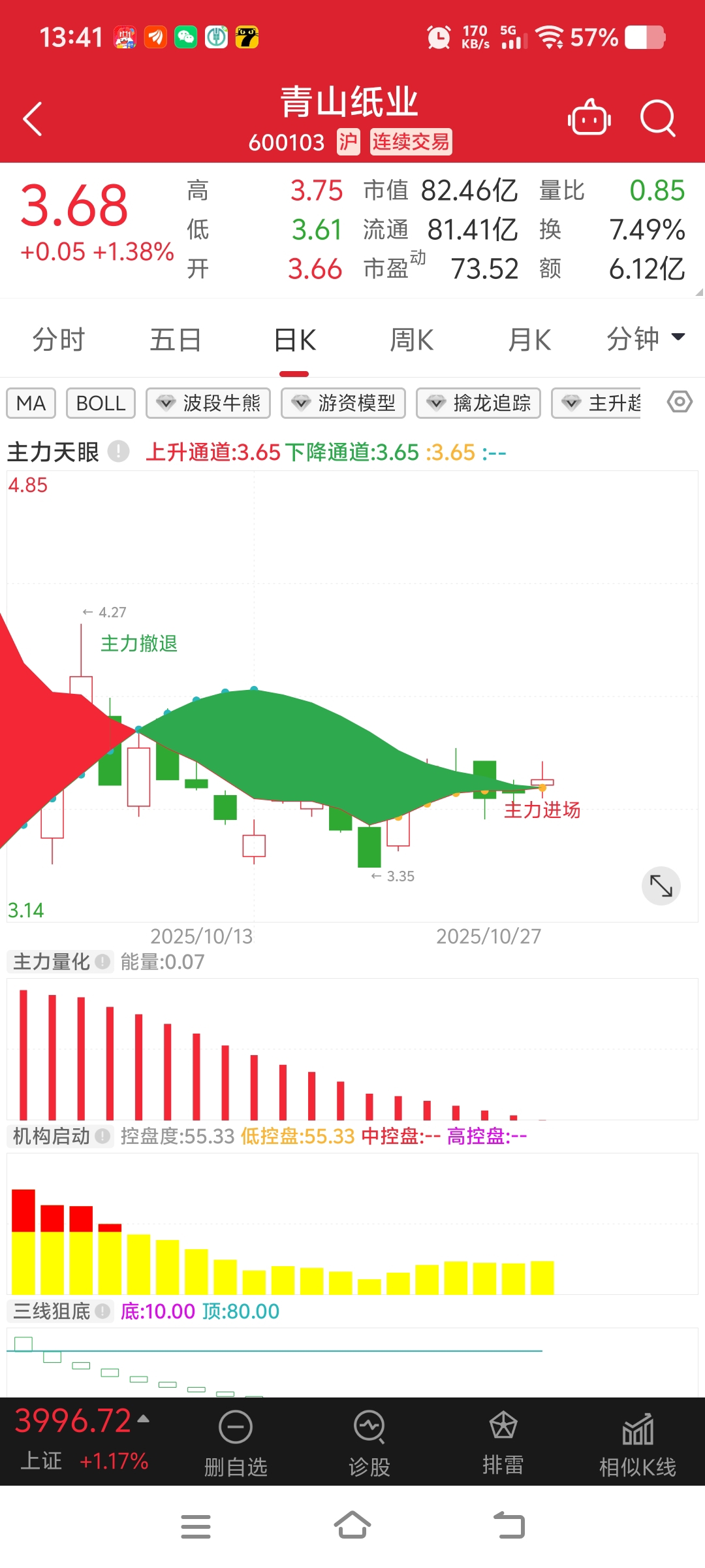 $青山纸业(SH600103)$ 主力上场了,干他。