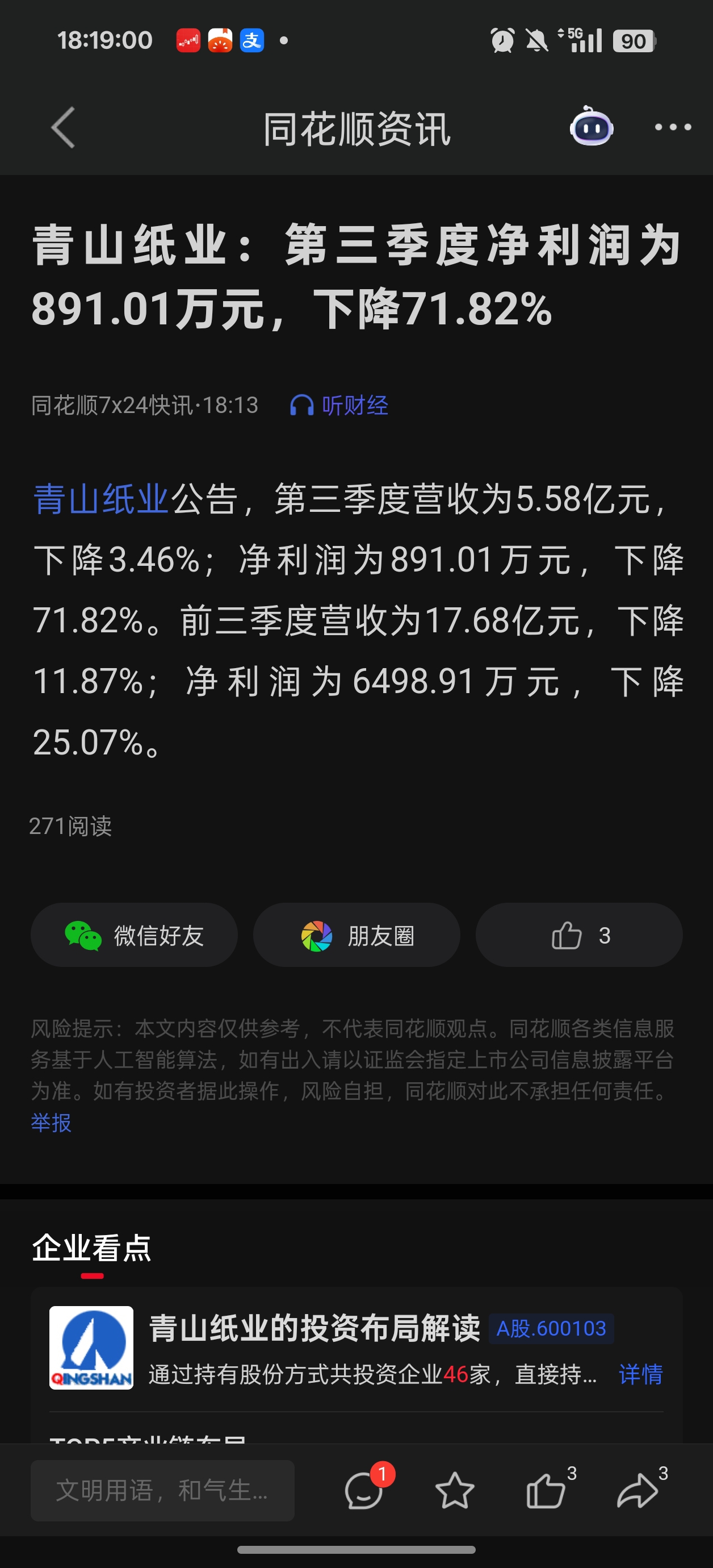 $青山纸业(SH600103)$ 怎么说