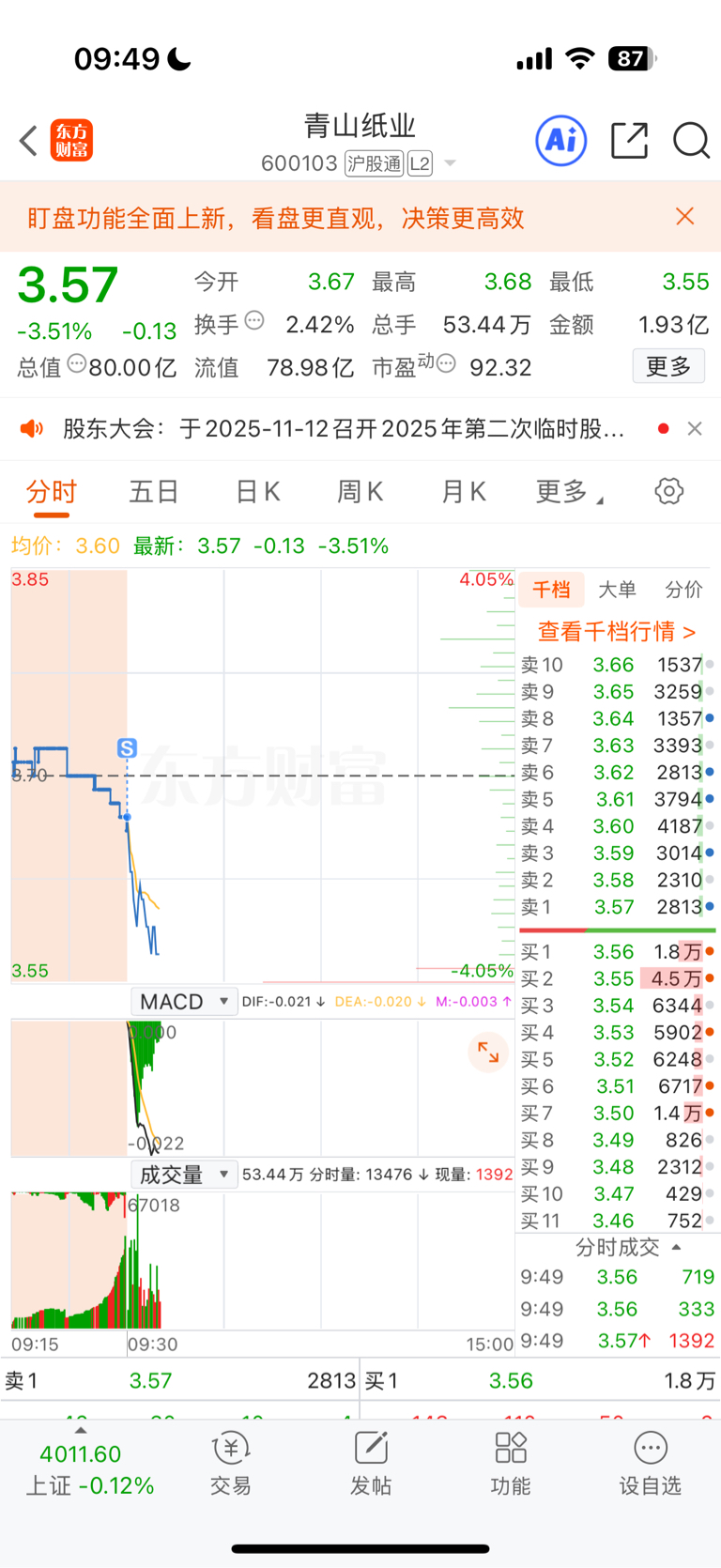 $青山纸业(SH600103)$ 开盘直接走人,关注我,每天复盘思路