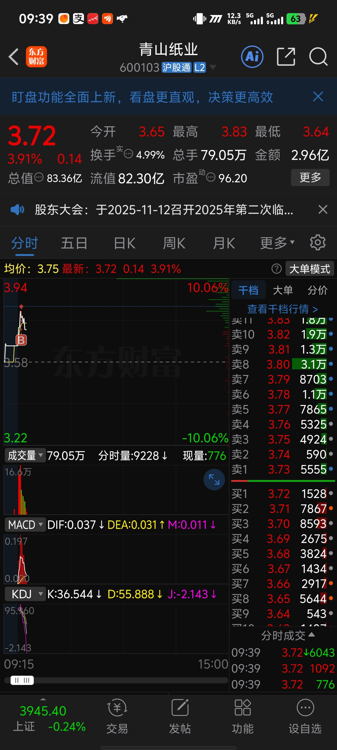 $青山纸业(SH600103)$ 有没有山顶的朋友,又要等解套咯