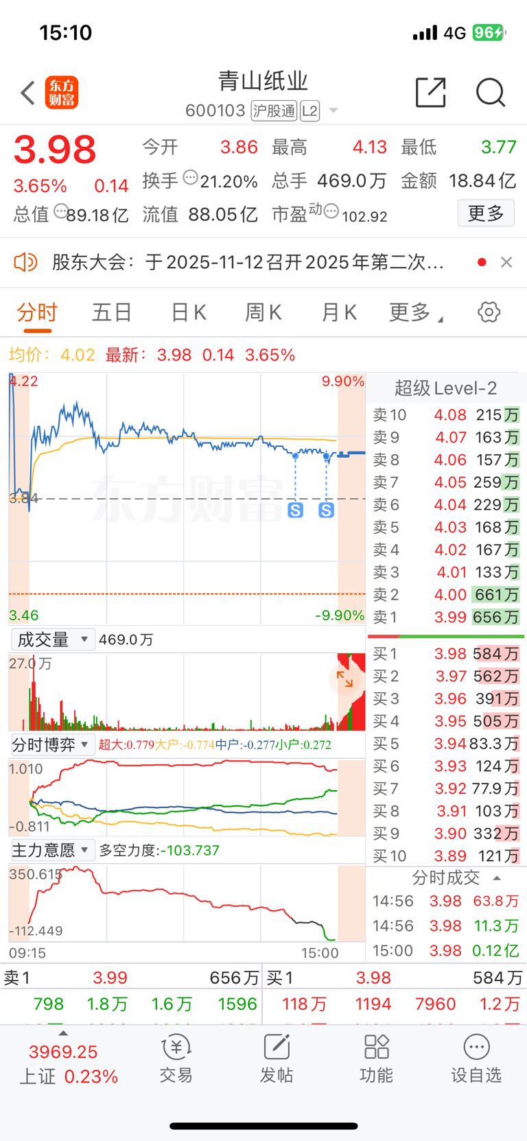 $青山纸业(SH600103)$ 跑了三分之二不知道明天如何走