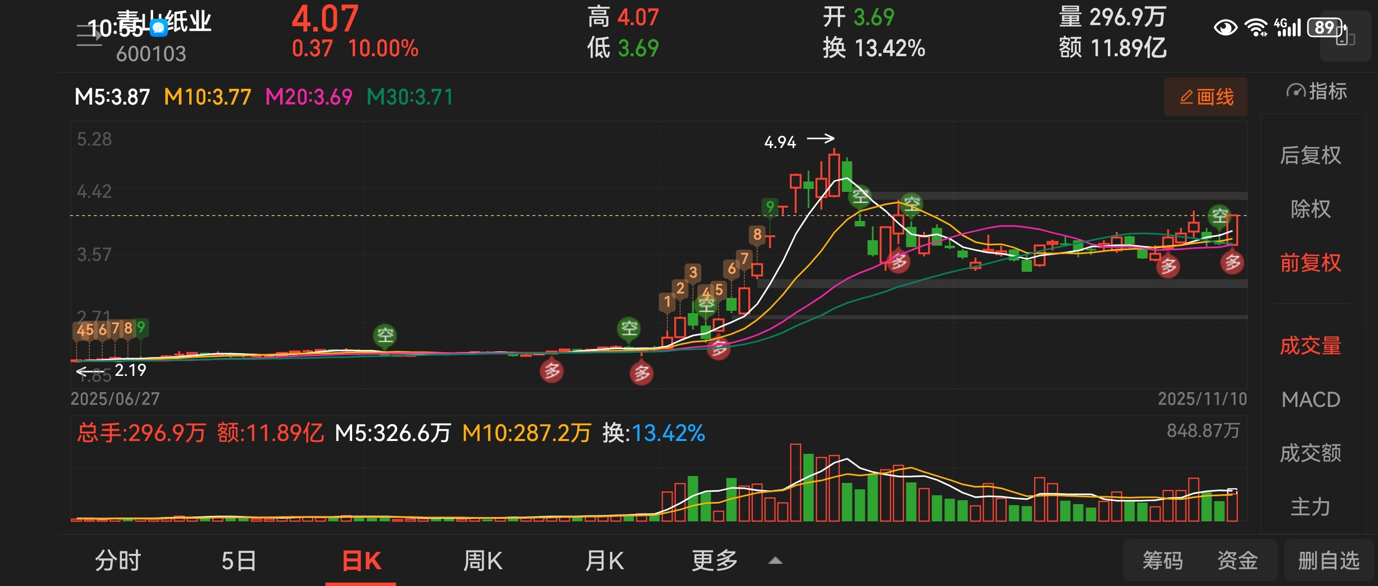 $青山纸业(SH600103)$ 11.5分享青山纸业,跟上了吗?继续看