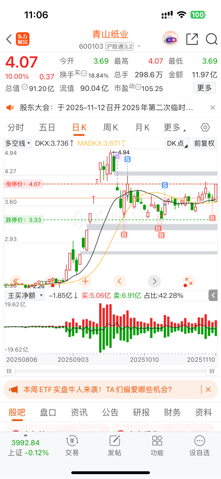 $青山纸业(SH600103)$ 每次进来都赚,在外面输到爆炸