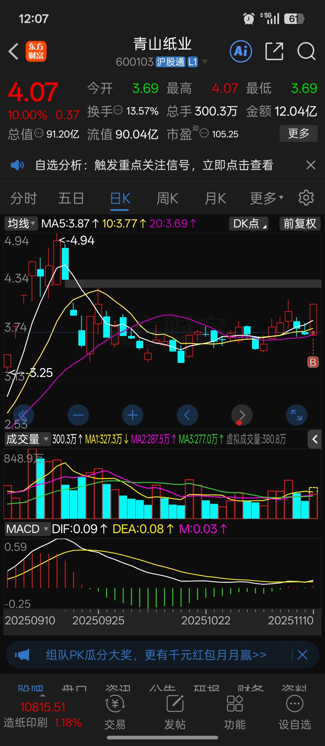 $青山纸业(SH600103)$ 快夸我,牛不牛