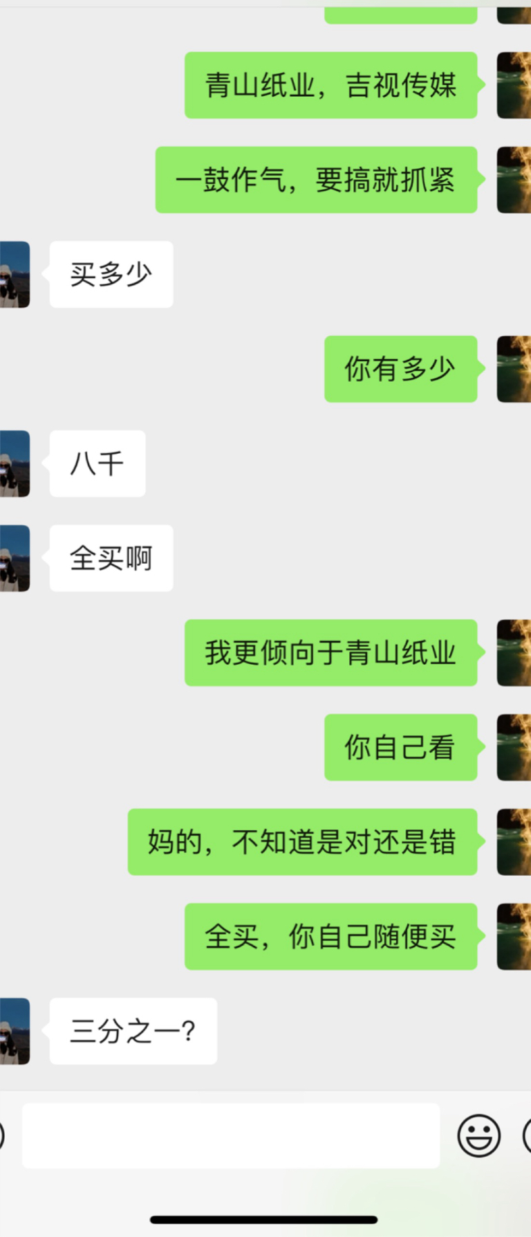 $青山纸业(SH600103)$ 前几天就给她说了。可惜自己全仓中国电影了