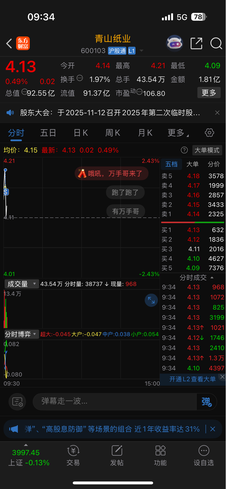 $青山纸业(SH600103)$ 嘻嘻,完美 T
