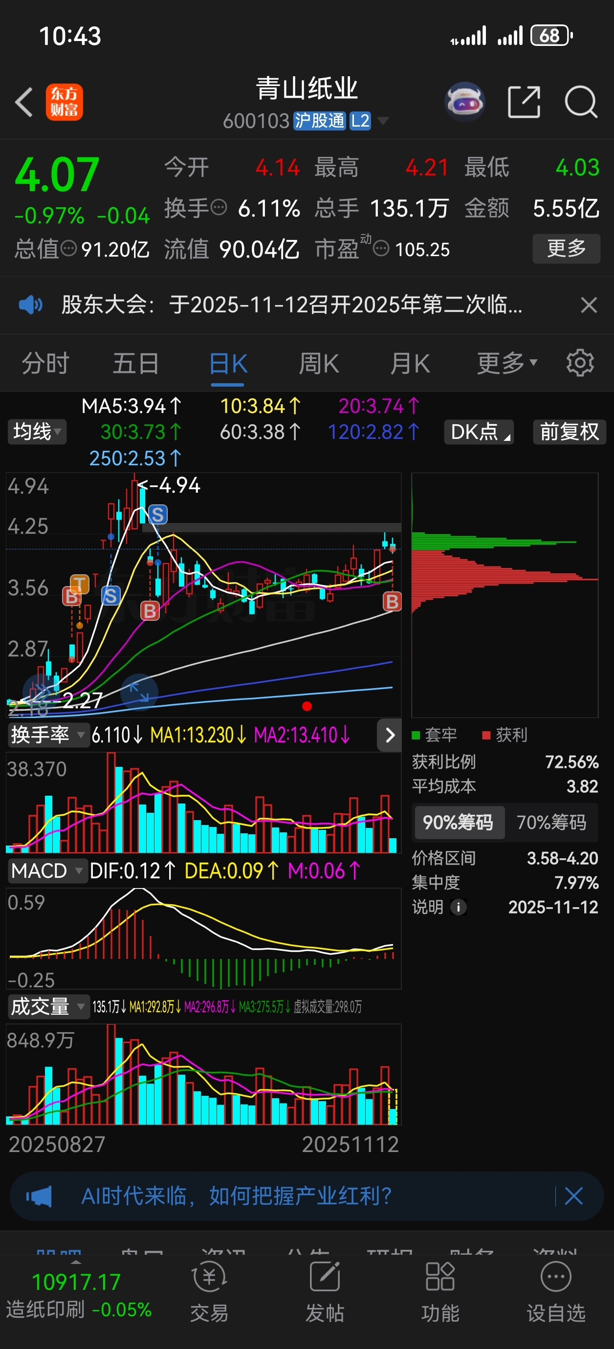 $青山纸业(SH600103)$ 回来了,家人们