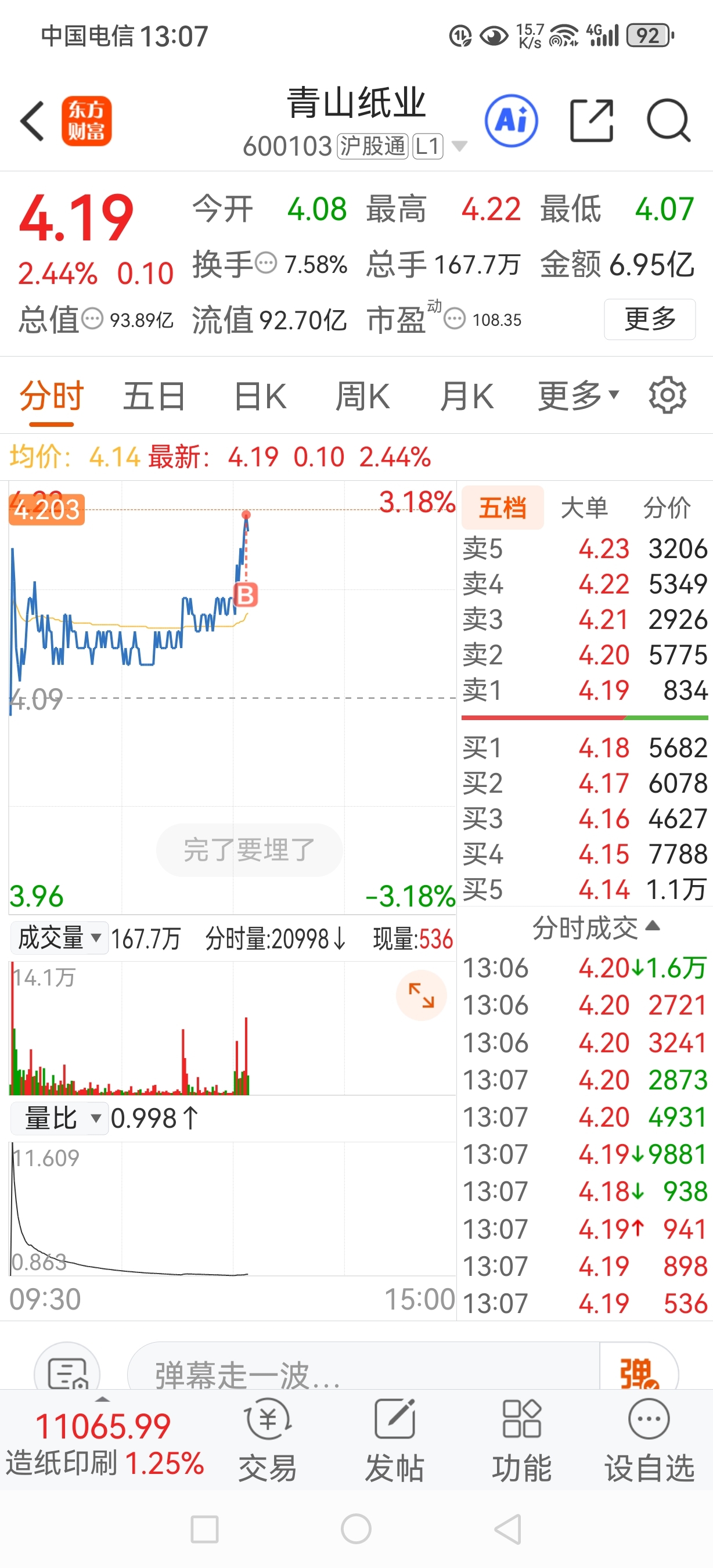 $青山纸业(SH600103)$ 一进来就做韭菜了?????