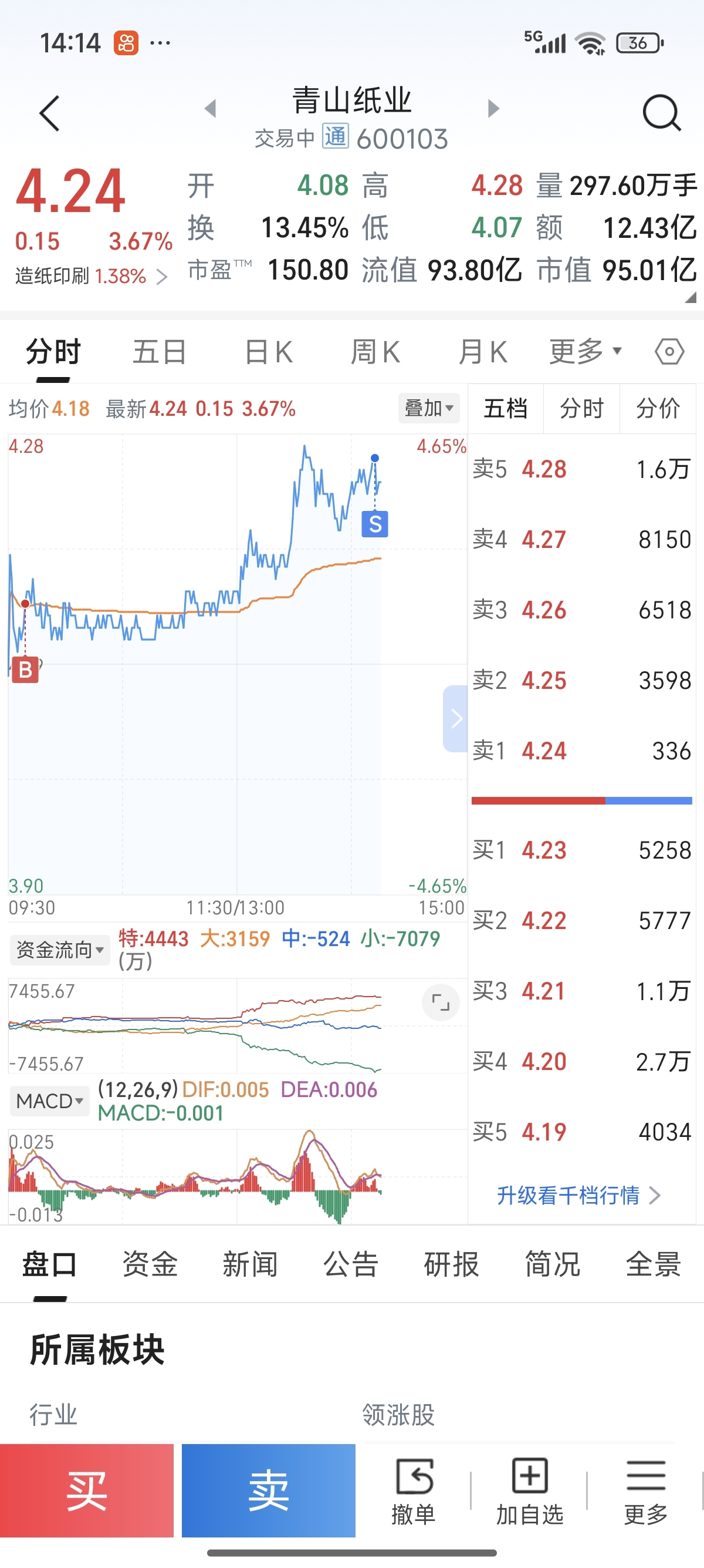 $青山纸业(SH600103)$ 每天做个t,什么时候大涨呀