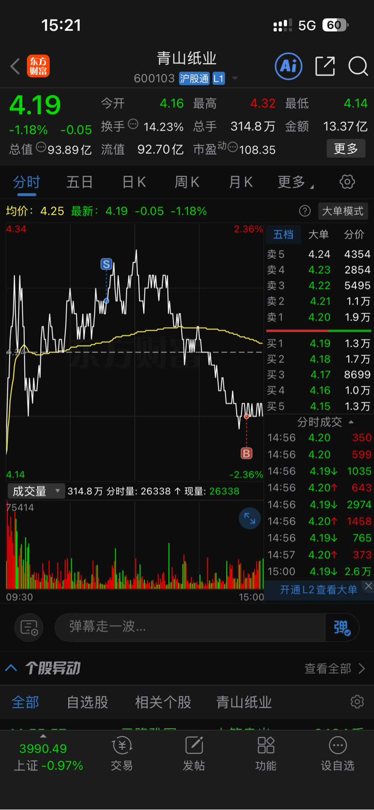 看到有的股友戾气好重,大可不必,说说我的看法。盘中全仓出货,尾盘选择接回一点底仓
