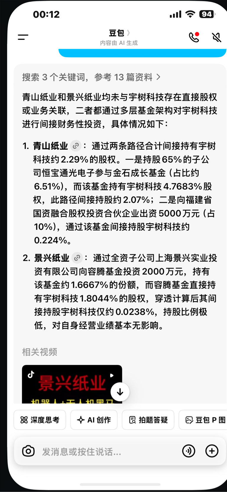 $青山纸业(SH600103)$ 青山纸业间接持股宇树科技比景兴纸业要多近十倍