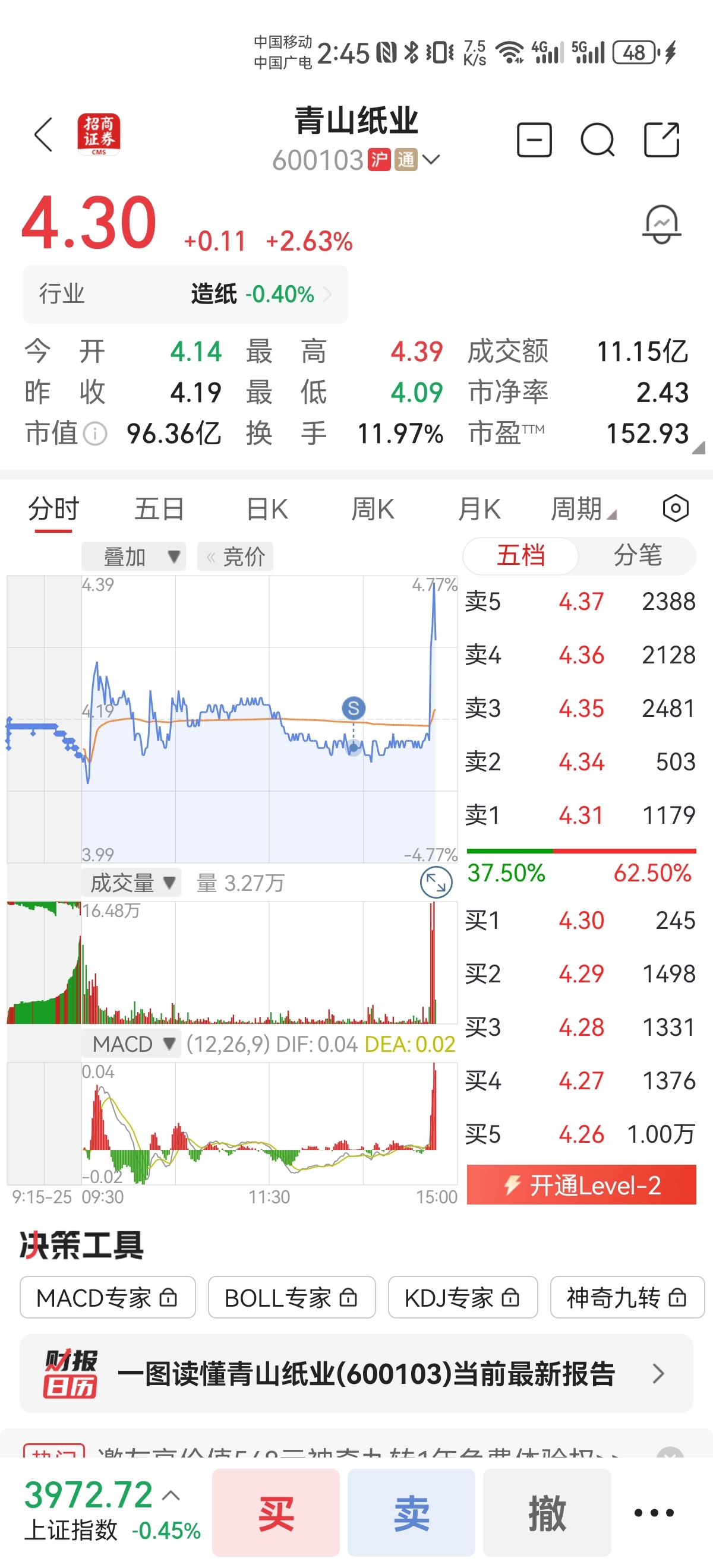 $青山纸业(SH600103)$ 真是狗啊