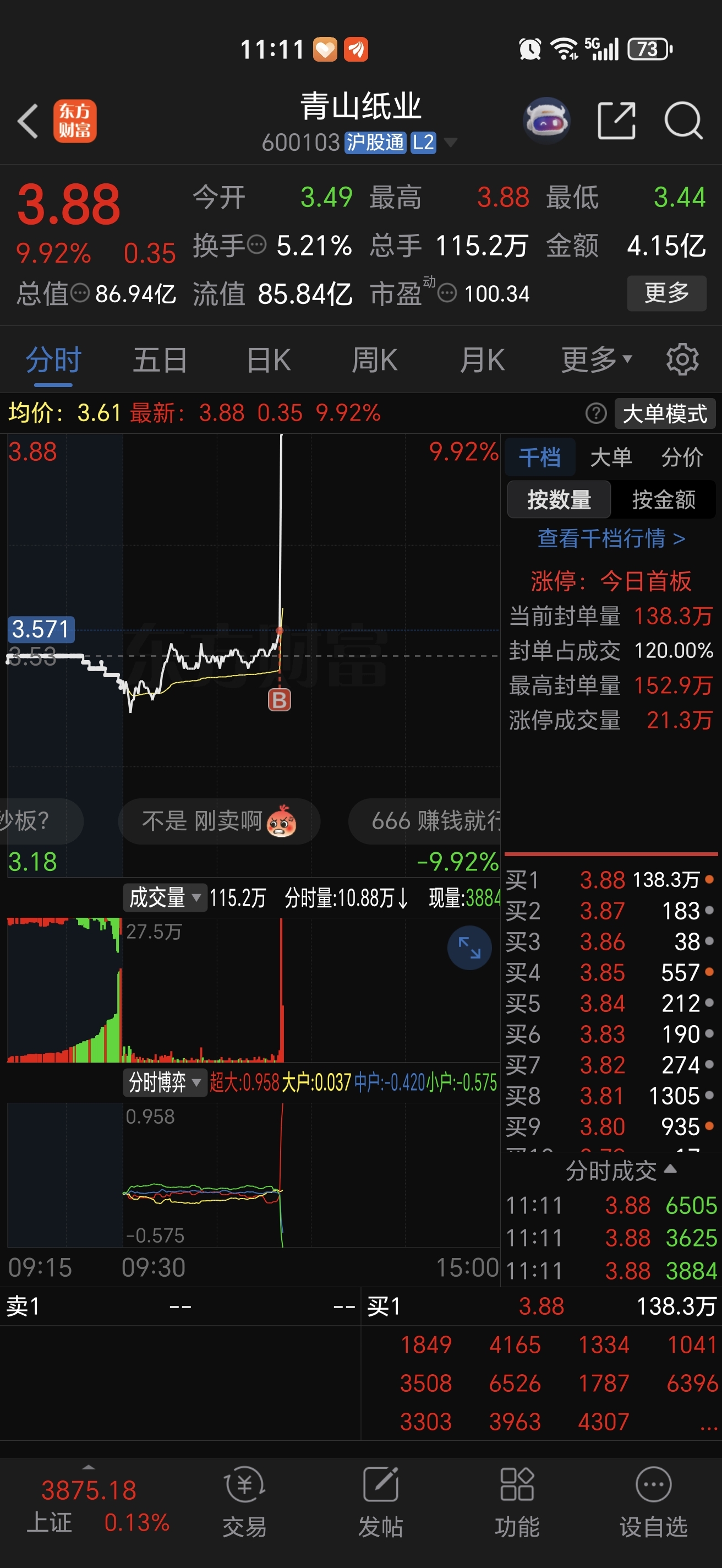 $青山纸业(SH600103)$ 不是?这啥情况啊