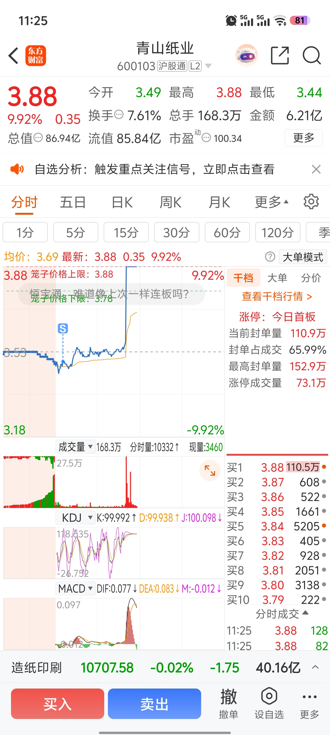 $青山纸业(SH600103)$ 我错过了什么,今天居然把你卖了,牙